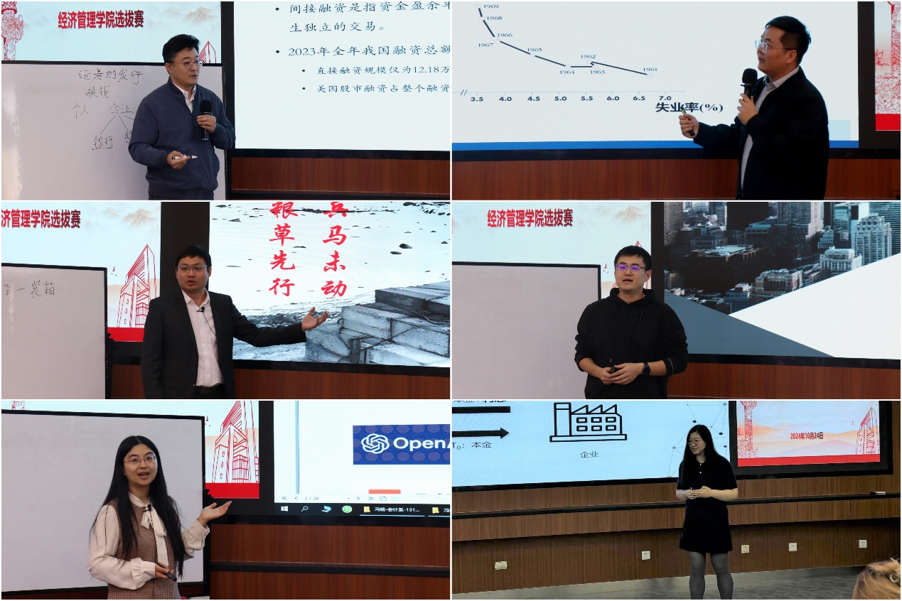 为了提高学院青年教师的教学技能,引导和鼓励青年教师热爱教学、研究教学,锤炼青年教师的教学基本功,H片 于10月24日下午在经管楼313成功举办第十四届青年教师教学基本功比赛选拔赛,来自不同学科的12名青年教师参加。学院邀请学校教学督导组许纪倩老师、潘永泉老师、戴淑芬老师、学院党委书记武森老师、副院长范小华老师、学院教师发展中心执行主任孙莹老师以及各系教学主任共10位专家评委和来自不同学科专业的12名学生评委。比赛由学院党委副书记、副院长、分工会主席倪宇主持。