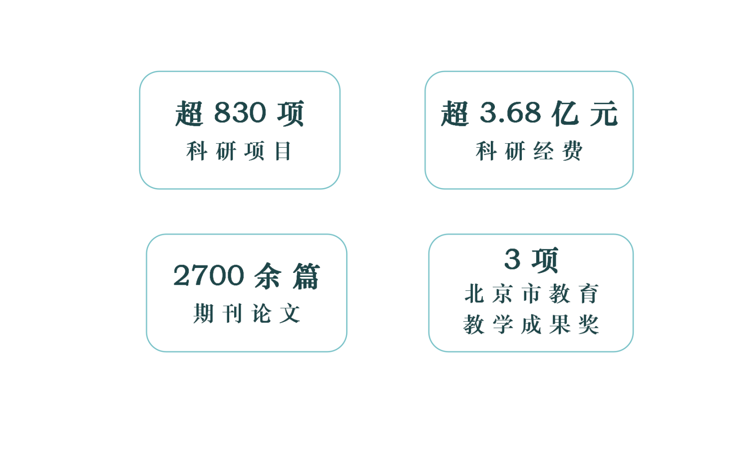 2015年以来,学院先后获得省部级等各类科研获奖近100项,承担了包括国家自然科学基金杰出青年基金、重点项目、国家社会科学基金重大招标项目等各类课题超830项,累计科研立项经费超3.68亿元,包含单项课题经费达千万元以上的、产生重大社会经济效益的企业委托项目。学院教师共发表期刊论文2700余篇,含SCI/SSCI期刊论文1300篇和CSSCI期刊论文510篇,其中UTD24/FT50列表期刊论文15篇;撰写出版专著72部、译著12部;编写教材88部。拥有国家级一流本科课程4门、北京市高校优质本科课程3门,国家级规划教材1本、北京市高校优质本科教材4本、以及北京市教育教学成果奖3项等丰硕的教学成果。