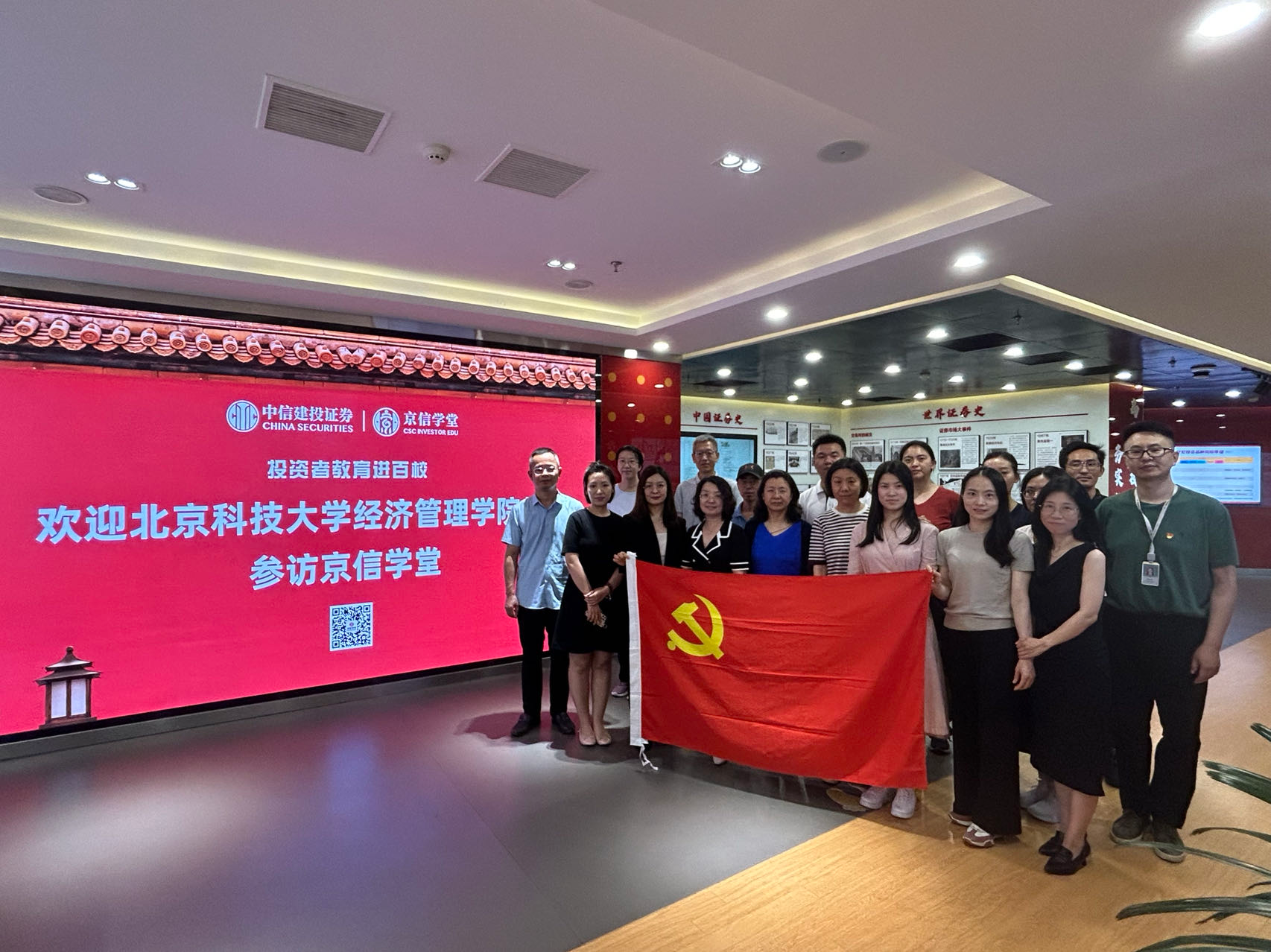 为了持续提高和培养教师金融素养和投资意识,2024年7月4日组织了一次意义深远的参观活动,H片 教师金融工程系党支部与工商管理系党支部一同走进中信建投投资者教育基地,深入了解金融市场发展历程与投资知识。