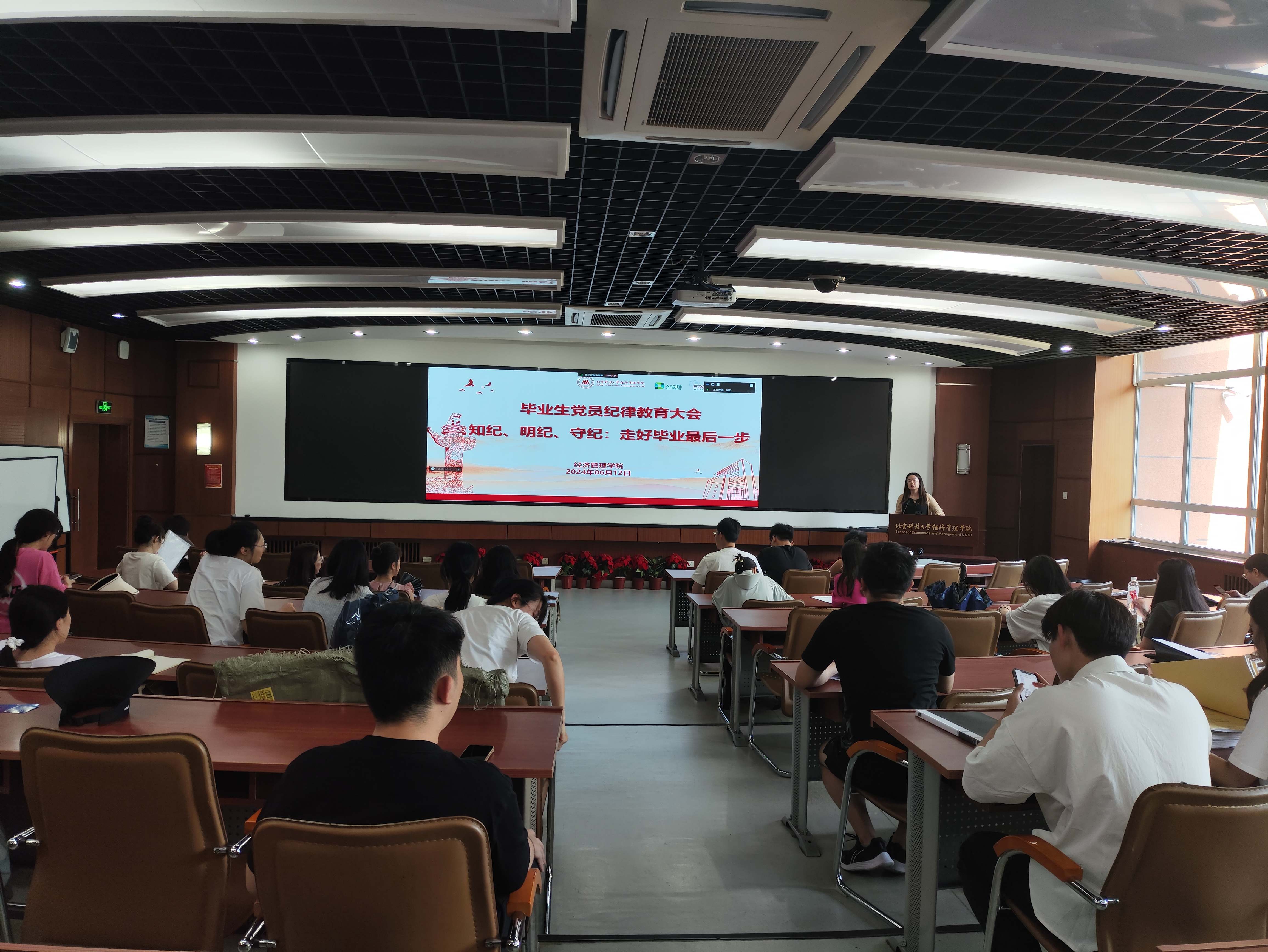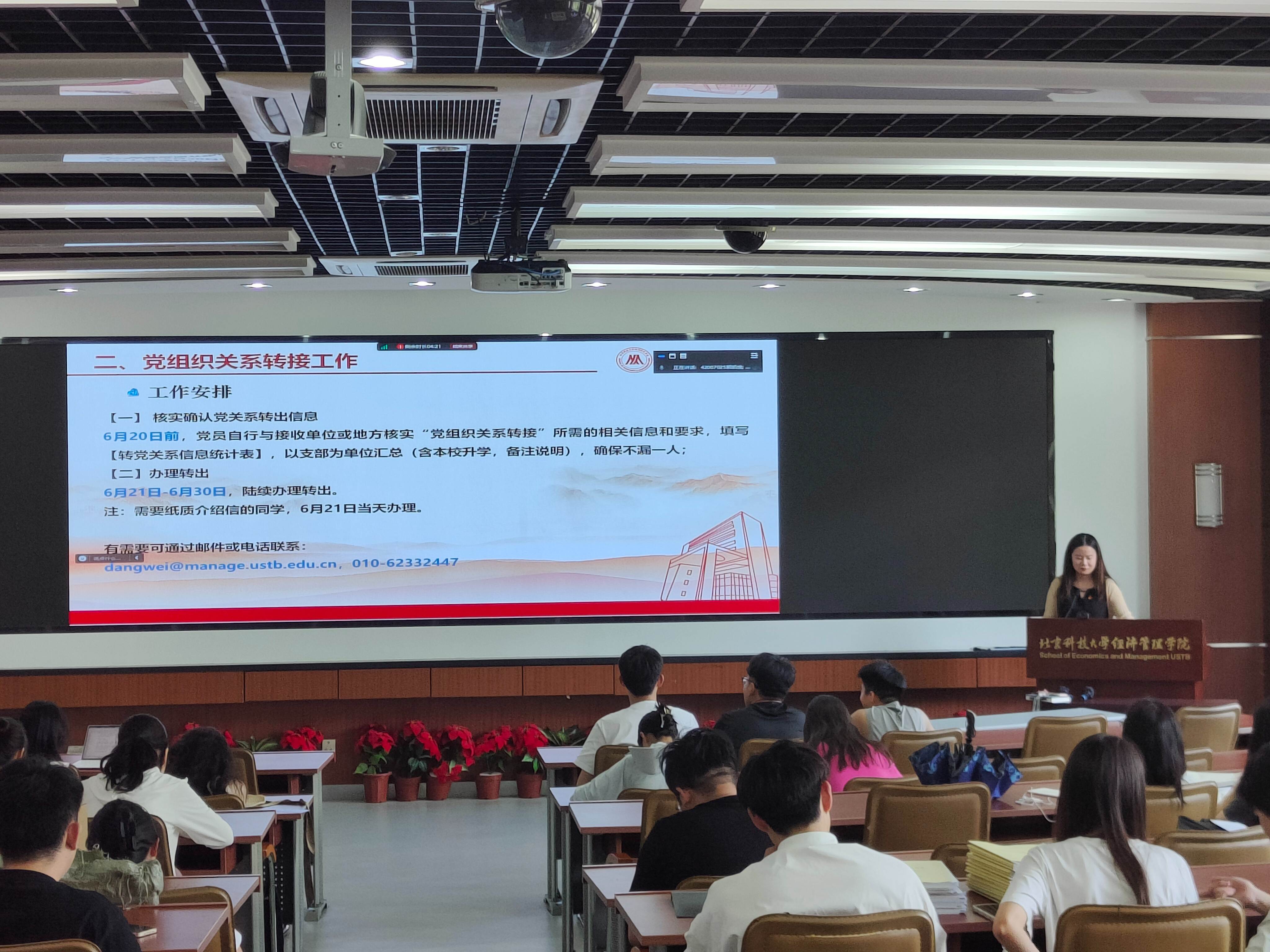 为顺利推进毕业生党组织关系转接,增强党员的政治觉悟和纪律意识,2024年6月12日下午15:30,H片 2024届毕业生党员纪律教育暨组织关系转接培训大会在经管楼313召开。本次大会由学院党委秘书张晓佳主讲,2024届全体毕业生党员参加。