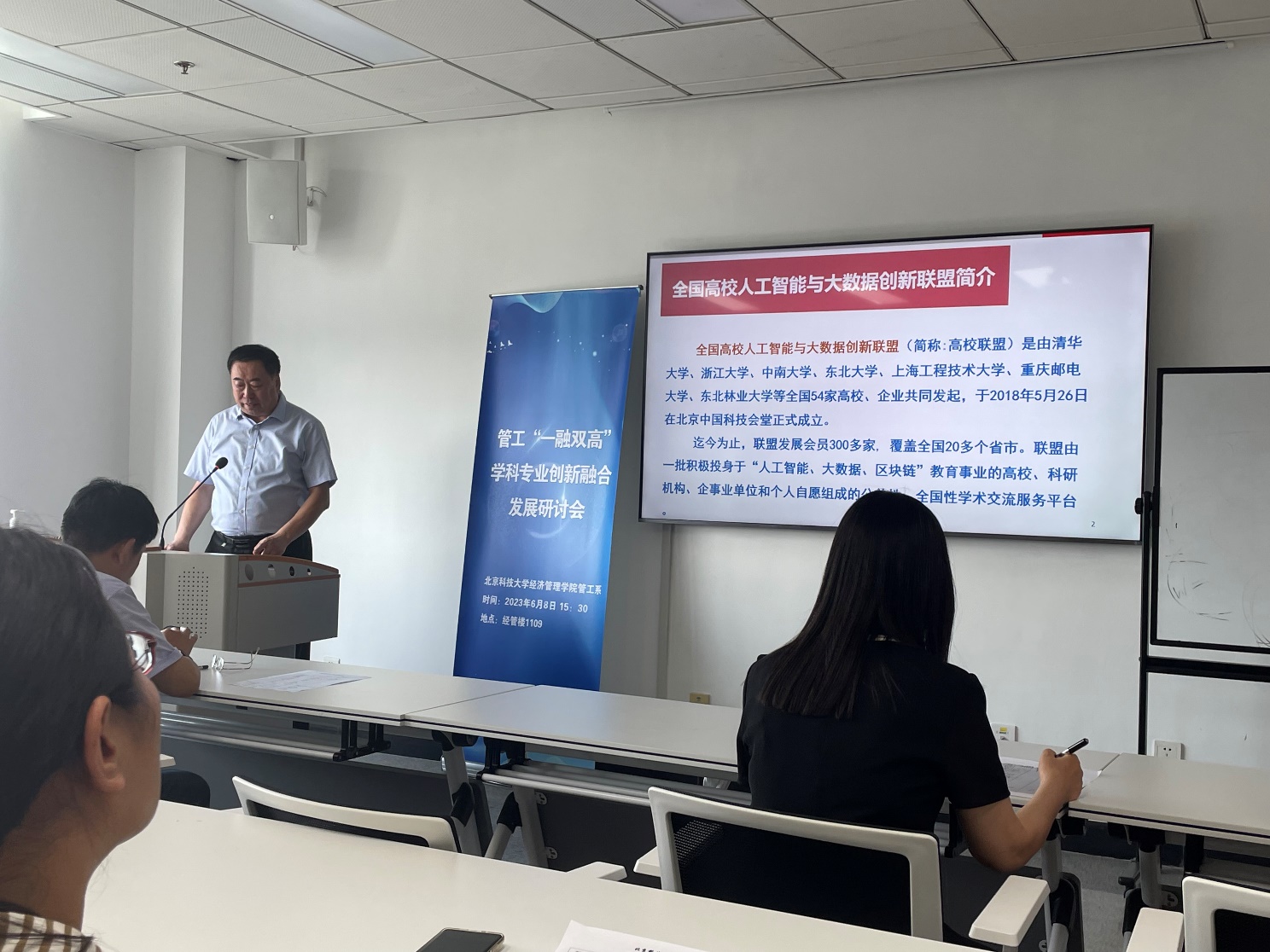 杨建华老师还特别提到了通过产学研融合,促进学科与专业融合,精益推进国家级一流本科专业建设点“信息管理与信息系统”、“大数据分析与应用”的课程群与教研室建设。目前双专业在软科2023专业排名中处于A类,其中大数据专业位列第6名。管工系已经形成以人为本,以学科“芯”驱动,引领双专业协同可持续发展的“一芯双翼”融合格局。在本年度,管工系党支部入选H片 首批“一融双高”样板党支部建设,并荣获校级先进集体、先进党支部称号,形成了人才培养的专业思政特色,实现专业核心课与拓展课知识、能力教育与思想价值引领的有机融合。