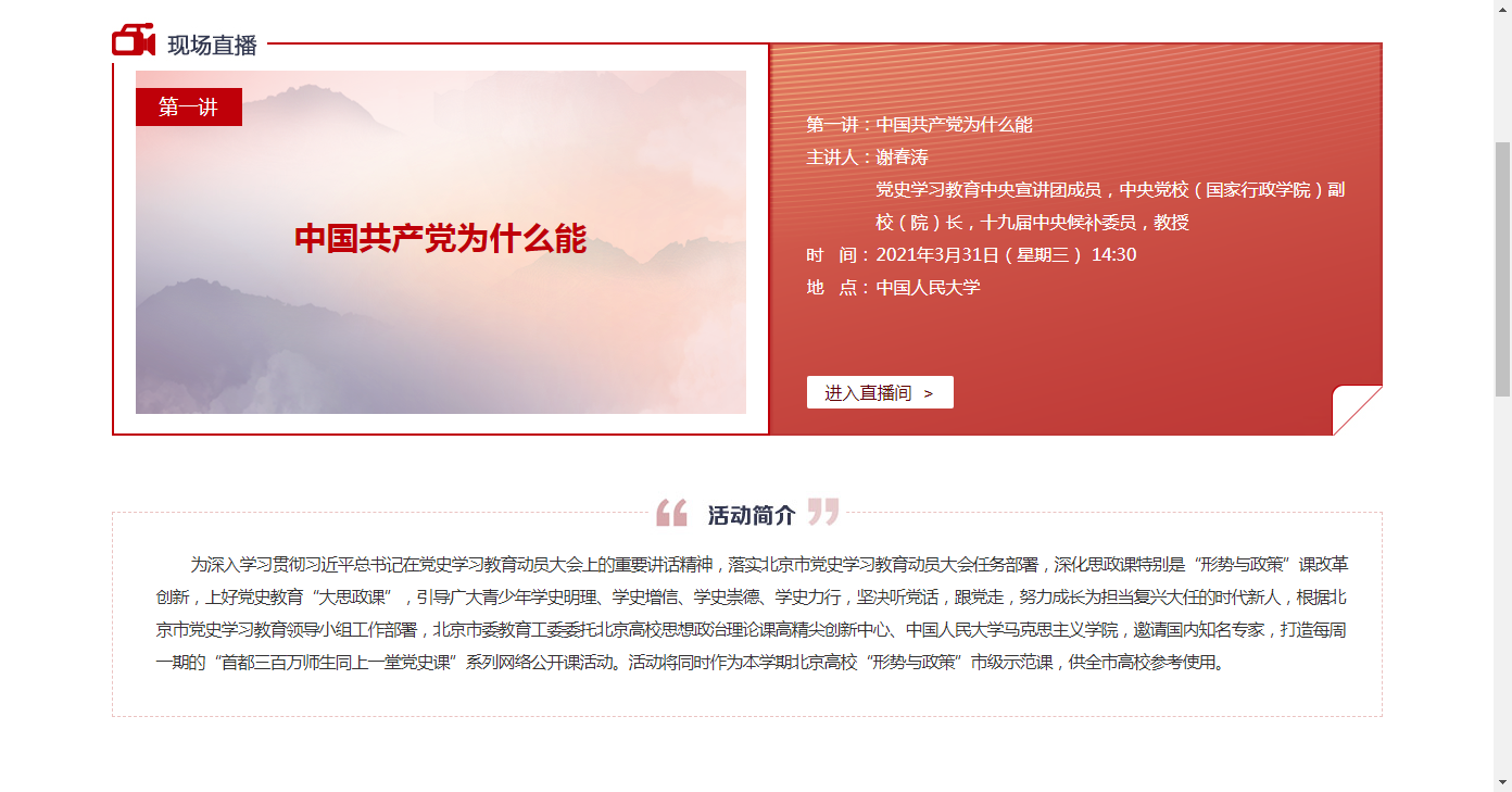 H片 组织各系教师收看“首都百万师生同上一堂党史课”网络公开课启动仪式暨首场报告会