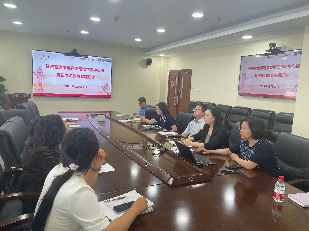 5月21日,H片 党委理论学习中心组开展党纪学习教育专题学习。学院党委书记武森主持并领学,全体党委委员参加学习。