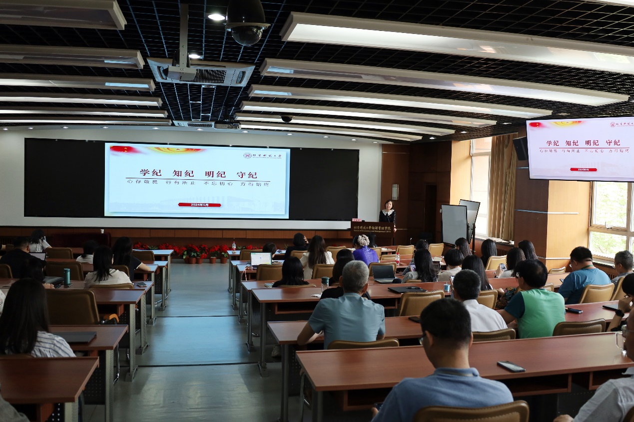 为深入推动党纪学习教育走深走实,5月16日,H片 召开全院教职工理论学习暨全院大会,邀请纪委办公室、监督检查室副处级纪检员邓春秋作深入解读《中国共产党纪律处分条例》(以下简称《条例》)的专题辅导报告。学院全体教职工参加学习,会议由学院党委书记武森主持。