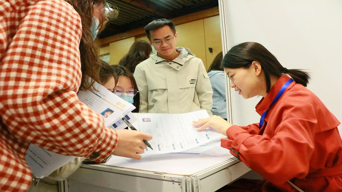 In the auditorium, enterprises fully showed their corporate culture, and students inquired actively about job requirements, lining up in front of some enterprise consultation desks. In addition, a “Resume Consultation Desk” was set up in the auditorium, where counselors helped students to revise their resumes, answer questions and provide guidance.