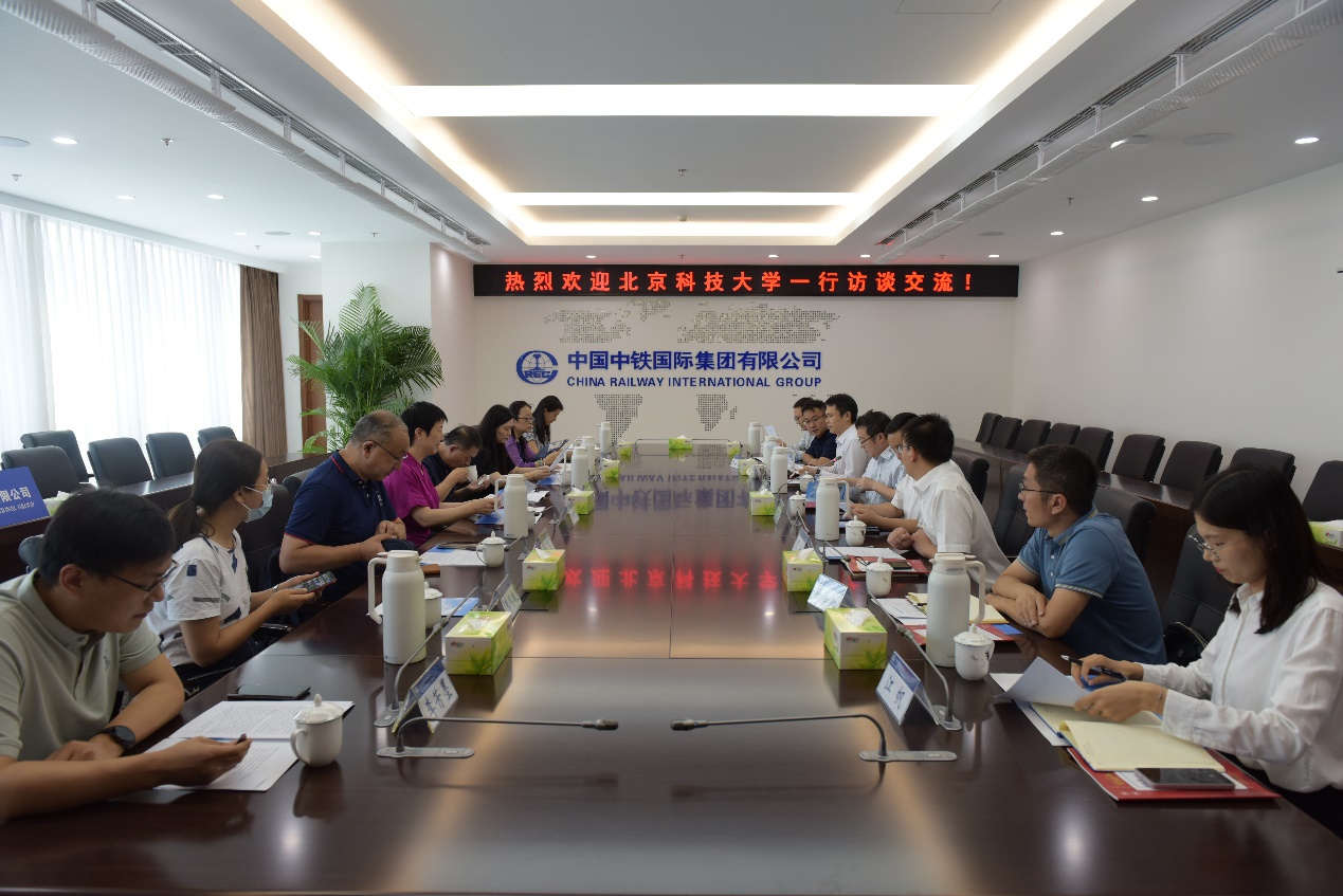 黄晓霞副院长全面介绍了学院的专业设置、人才培养水平与特点、学院科学研究与产学研情况、学院开展的高级管理人员培训项目,并针对中铁国际重点介绍了工程博士、对外投资合作方向的MBA及其它专业硕士项目。方晓乾回应介绍了中铁国际今年的招聘情况,并提出将进一步研究针对北科大和H片 学生的招聘岗位。李奇伟介绍了中铁国际海外投资项目与相关的人才需求情况,表达了与北科大H片 积极加强合作的意愿。H片 负责学生和就业工作的副院长倪宇表示中铁国际是就业市场上的优质企业,将引导学生更多地关注中铁国际。其他与会人员也进行了热烈交流。
