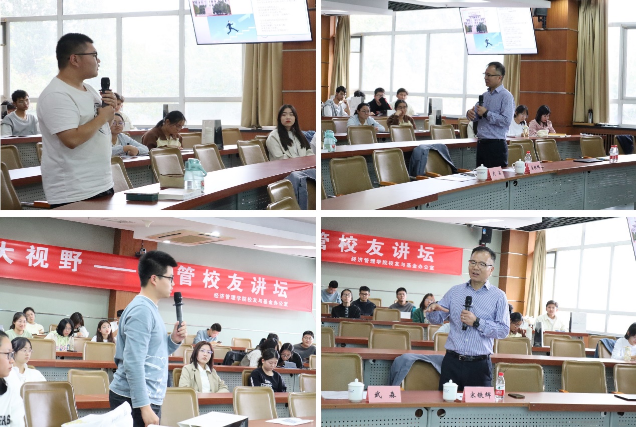 在互动交流环节,针对师生们提出的大学时期对个人的影响、企业转型及上市的原因、校友选择加入汽车行业的契机等方面的问题,宋铁辉校友都予以耐心、详细的解答,并建议同学们要定位自己的人生,找到属于自己的内驱力目标。