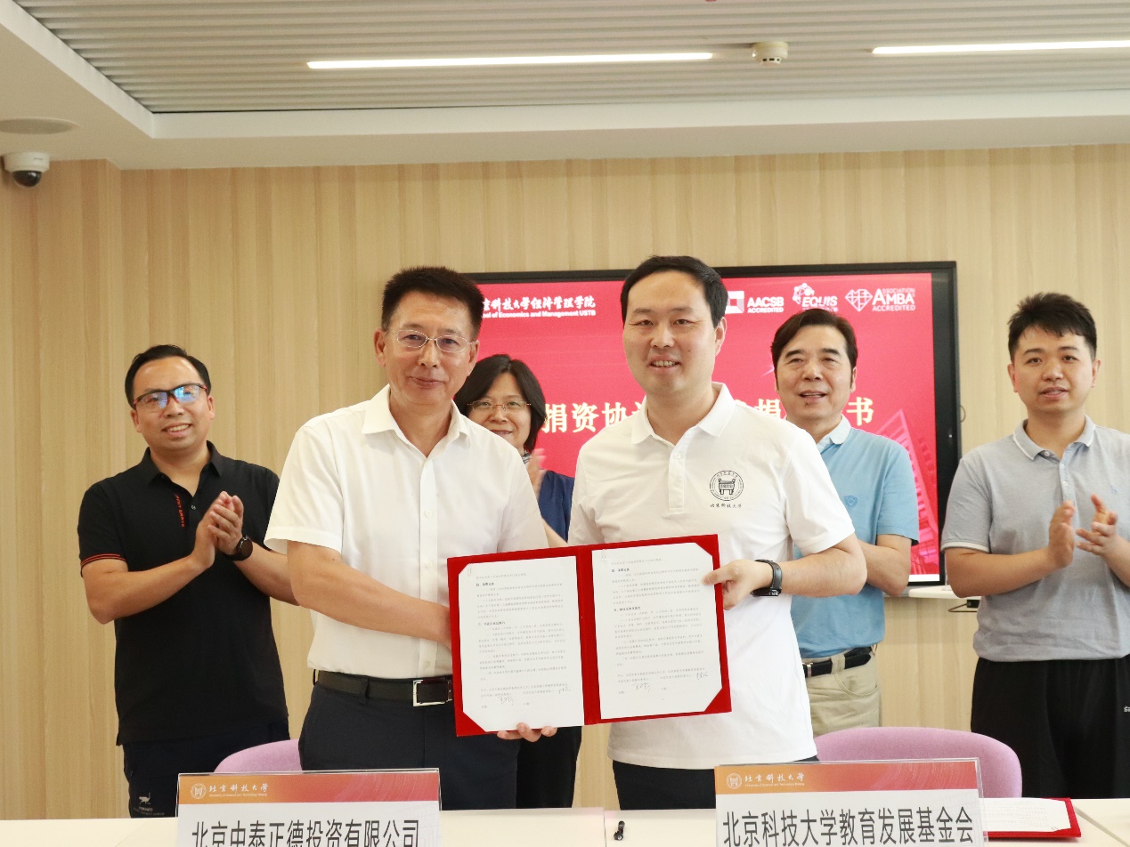 闫奎铭与王昕共同签署“经管创业实践基金”捐资协议,并向王昕颁发捐资证书。