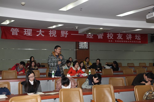 2015年12月22日,“管理大视野—经管校友讲坛”第十一讲在经管楼312教室举办。讲座主题为“赢在专业之上—基于行政事业单位财审工作实践的思考”。本期讲坛嘉宾为我院会计学专业本科91级、管研95级校友徐英国。徐英国校友曾任学院分团委书记、学生党支部书记、95级本科生辅导员等,现就职于国家工商总局,负责财务预算和审计监督工作,先后获得中央国家机关优秀青年、中央国家机关公务员考试面试考官、全国会计领军人才,曾两次记三等功。2009年以来,兼任上海财经大学国际工商管理学院、首都经贸大学会计学院等专硕校外导师。