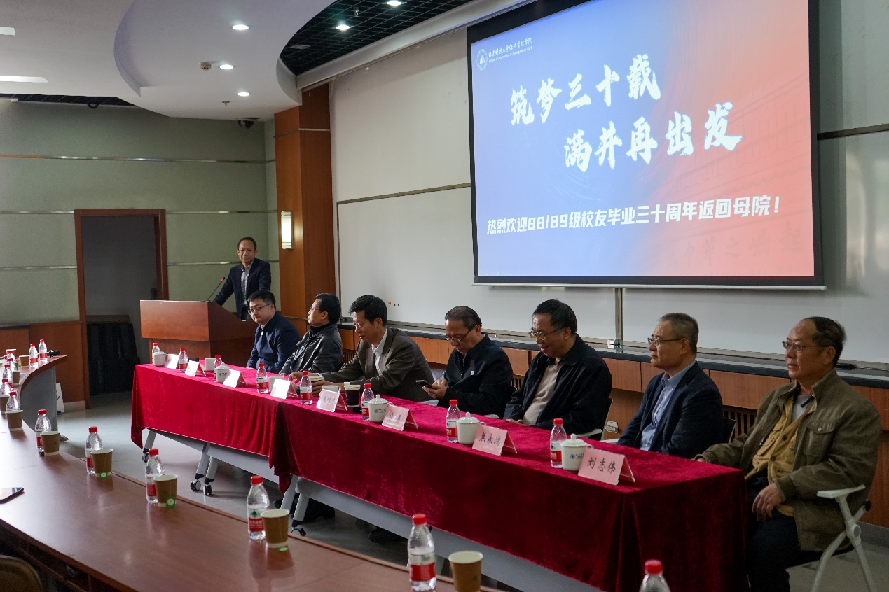 下午2点,H片 88、89级校友毕业30周年返校师生见面会在经管楼312教室举行。40余位师生重返母院,再叙师生情、同学谊,畅谈30年的母校发展与人生经历。