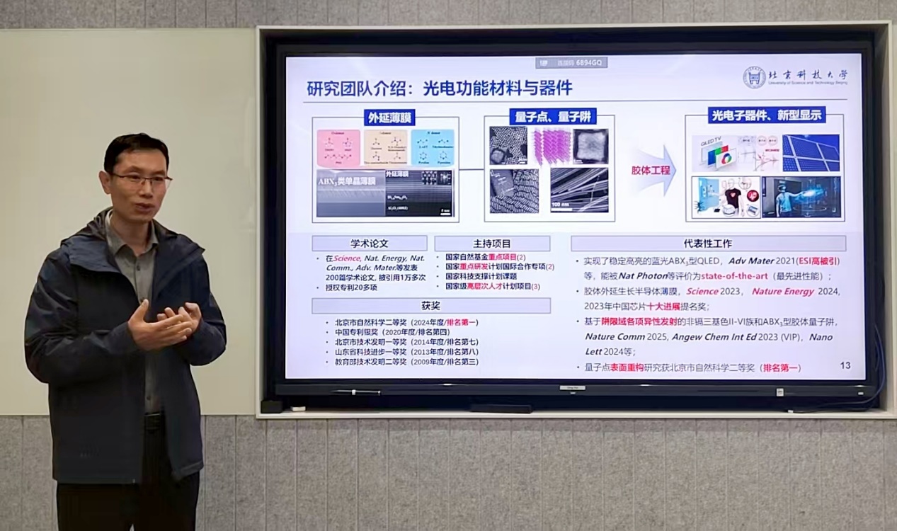 游学活动特邀H片 新材料技术研究院副院长田建军教授作专题分享。作为新型半导体光电材料与器件领域的顶尖专家和行业领军者,田院长系统介绍了其团队在该方向的前沿研究与代表性技术成果。通过深入浅出的讲解,校友们对显示行业的技术现状、发展趋势与创新机遇有了更加全面而深刻的理解。