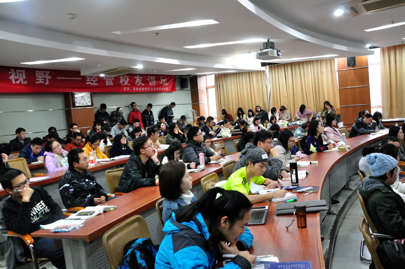 活动开始在下午3:30。学院党委书记戴淑芬教授首先介绍主讲校友和经管校友讲坛系列活动后,讲座开始。黄孝斌校友重点介绍对创新创业和企业家精神的认识和看法,创新1.0到创新3.0的变革历程以及什么是物联网。
