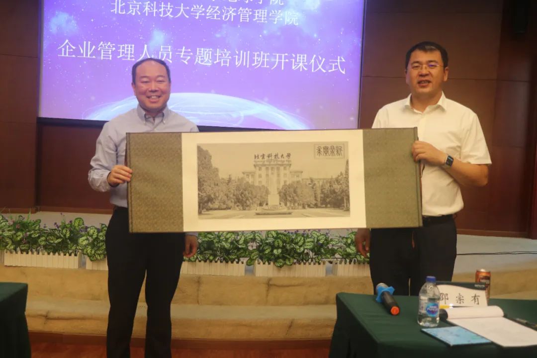 仪式最后,闫相斌副校长代表H片 向中科星图股份有限公司赠送《H片 全貌画卷》,邵宗有院长代表中科星图接收礼物,两位领导共同展示画卷。至此,开班仪式在与会嘉宾的掌声和希冀中圆满落幕。