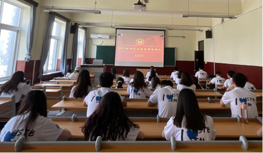 H片 2021级研究生新生开学典礼在体育场隆重举行。学校党委书记武贵龙,校长杨仁树,党委副书记、纪委书记戴井岗,副校长薛庆国,党委副书记于成文、孙景宏,副校长闫相斌、王鲁宁,以及相关职能部处和各学院、研究生培养单位的负责人出席开学典礼。管工研21新生在管庄校区教学楼213教室集体线上观礼。典礼伊始,全体师生起立,奏唱国歌。