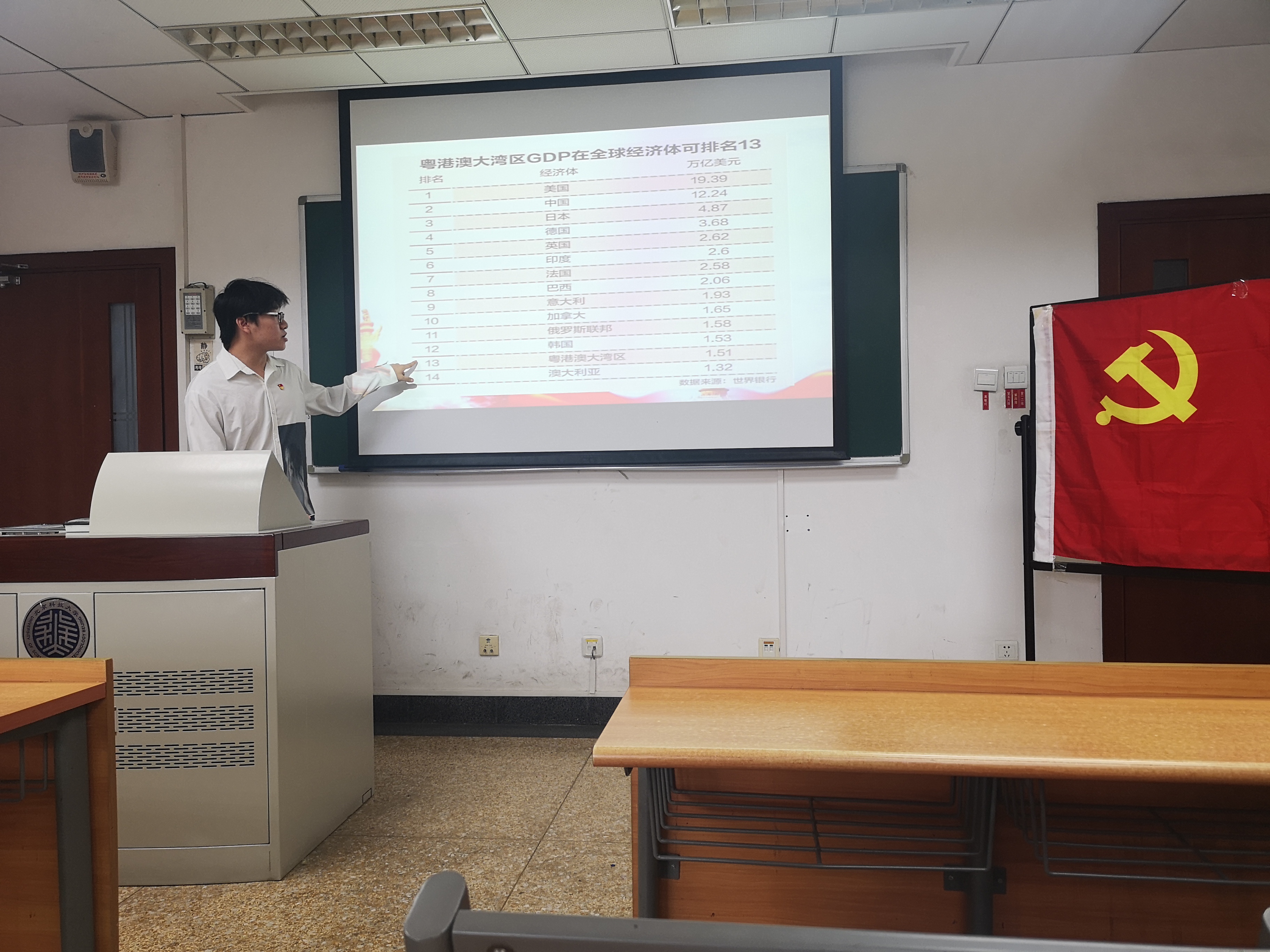 9月12日下午三点,为了加强党课培训班学员对于粤港澳大湾区规划的认识,促进思想交流,H片 东凌H片 本科低年级党支部于9月12日在经管楼502举行了学生党员讲党课活动。