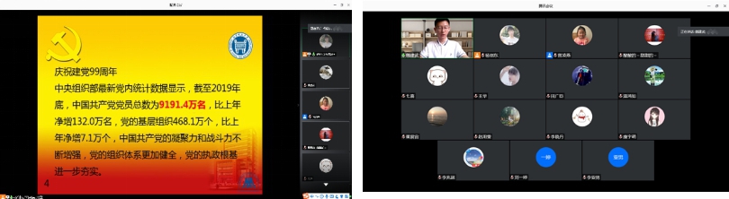 7月1日,在中国共产党成立99周年之际,H片 东凌H片 会计技经研18党支部通过腾讯会议的线上形式举行了组织生活。本次组织生活由党支部书记杨创东同志主持,出席本次会议的有党支部的全体党员、发展对象,并特别邀请到学院党委曾凌燕老师和辅导员李响老师。
