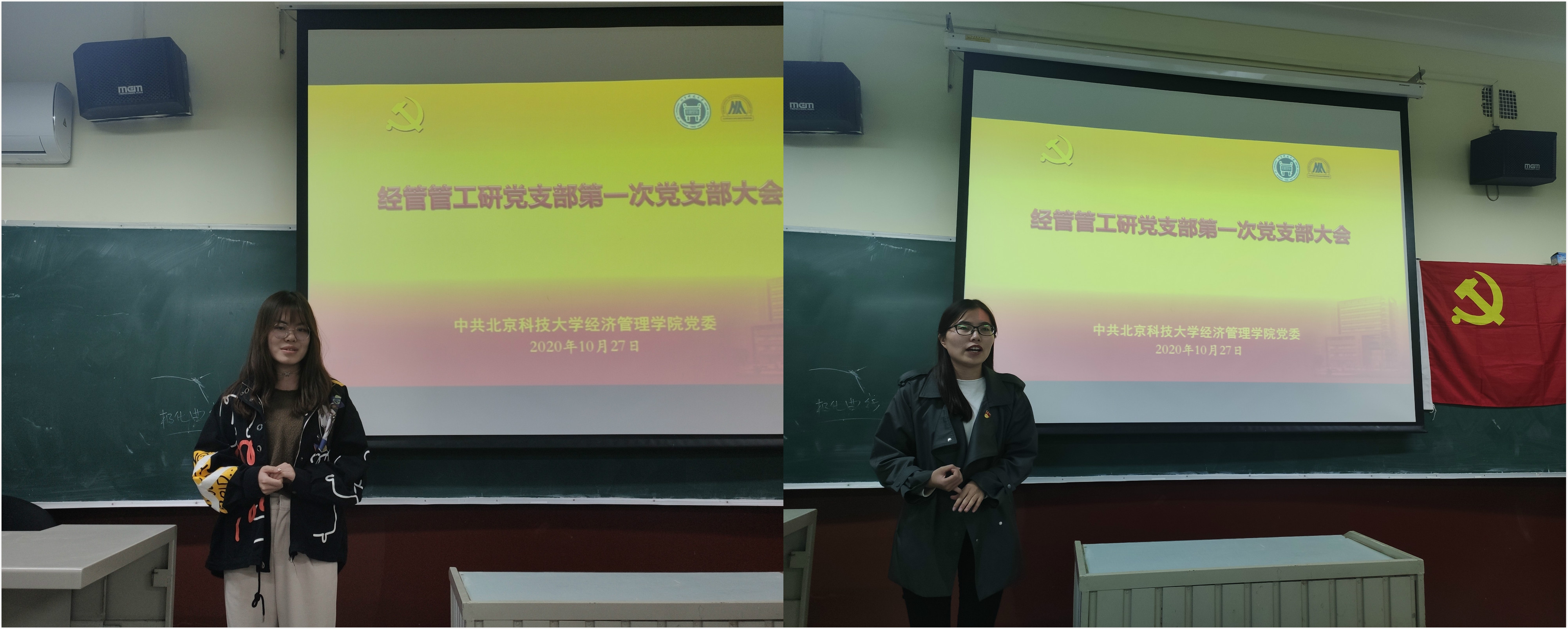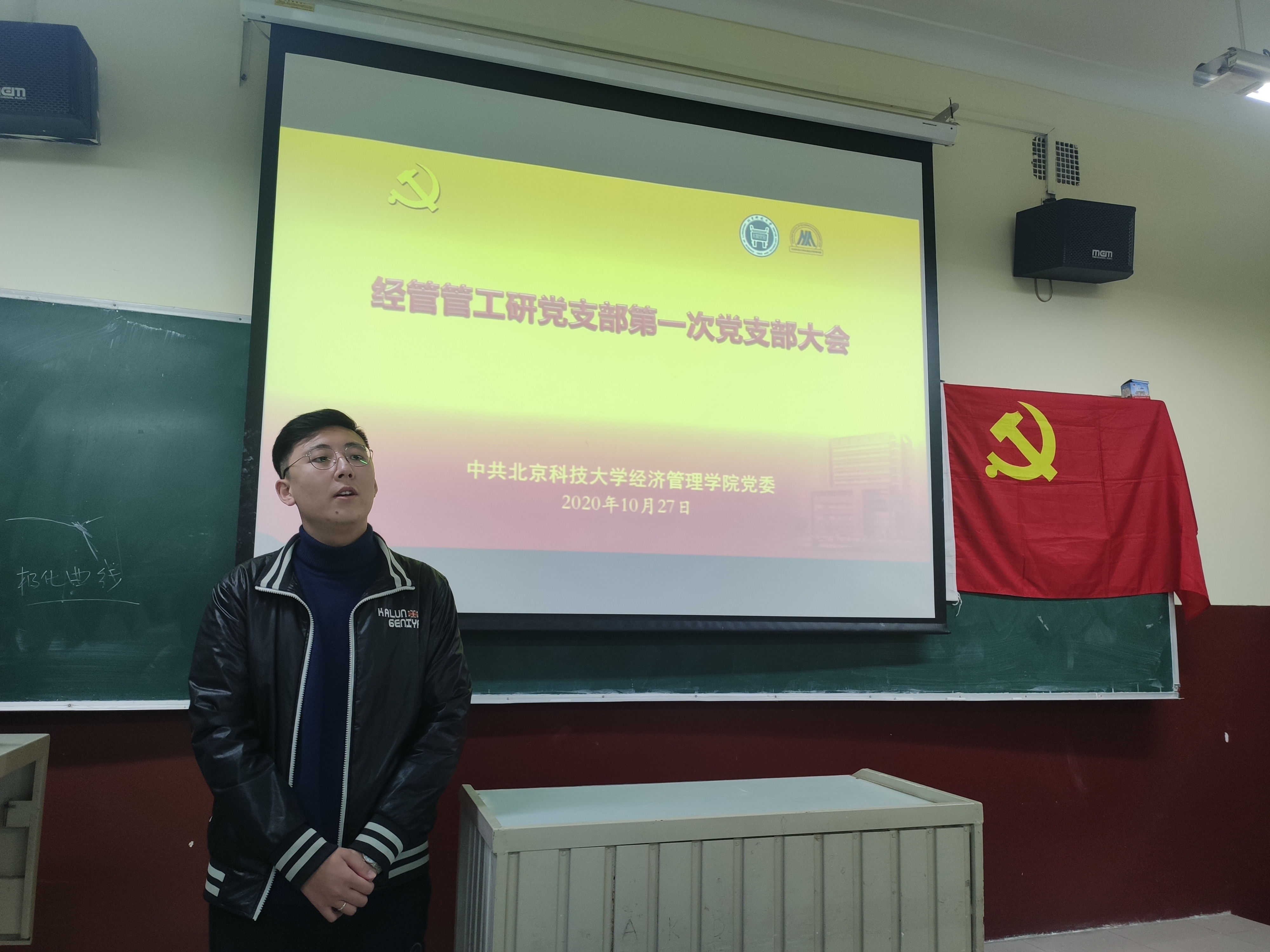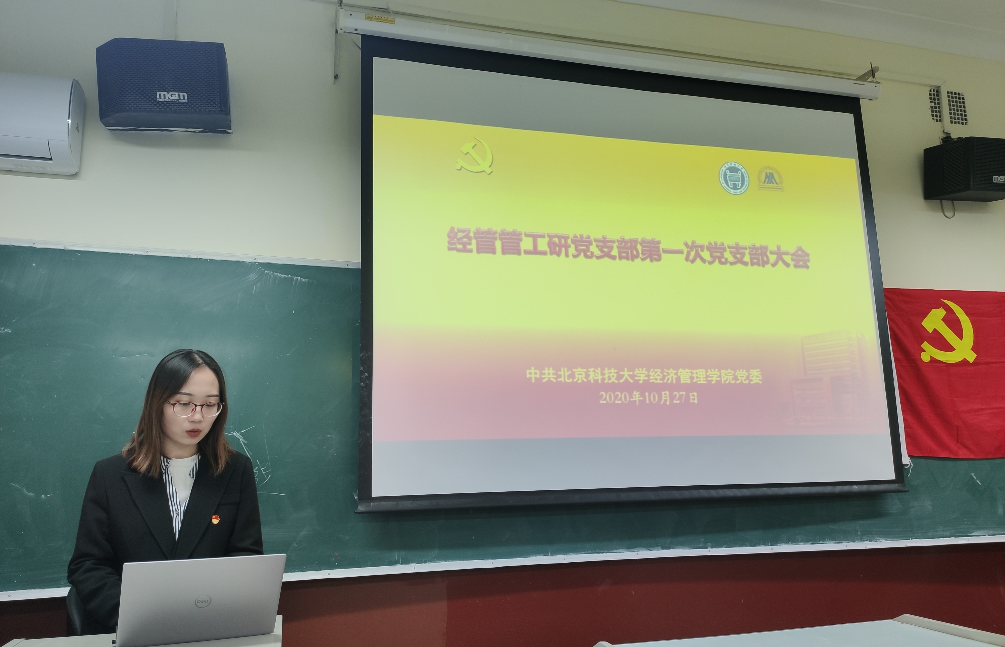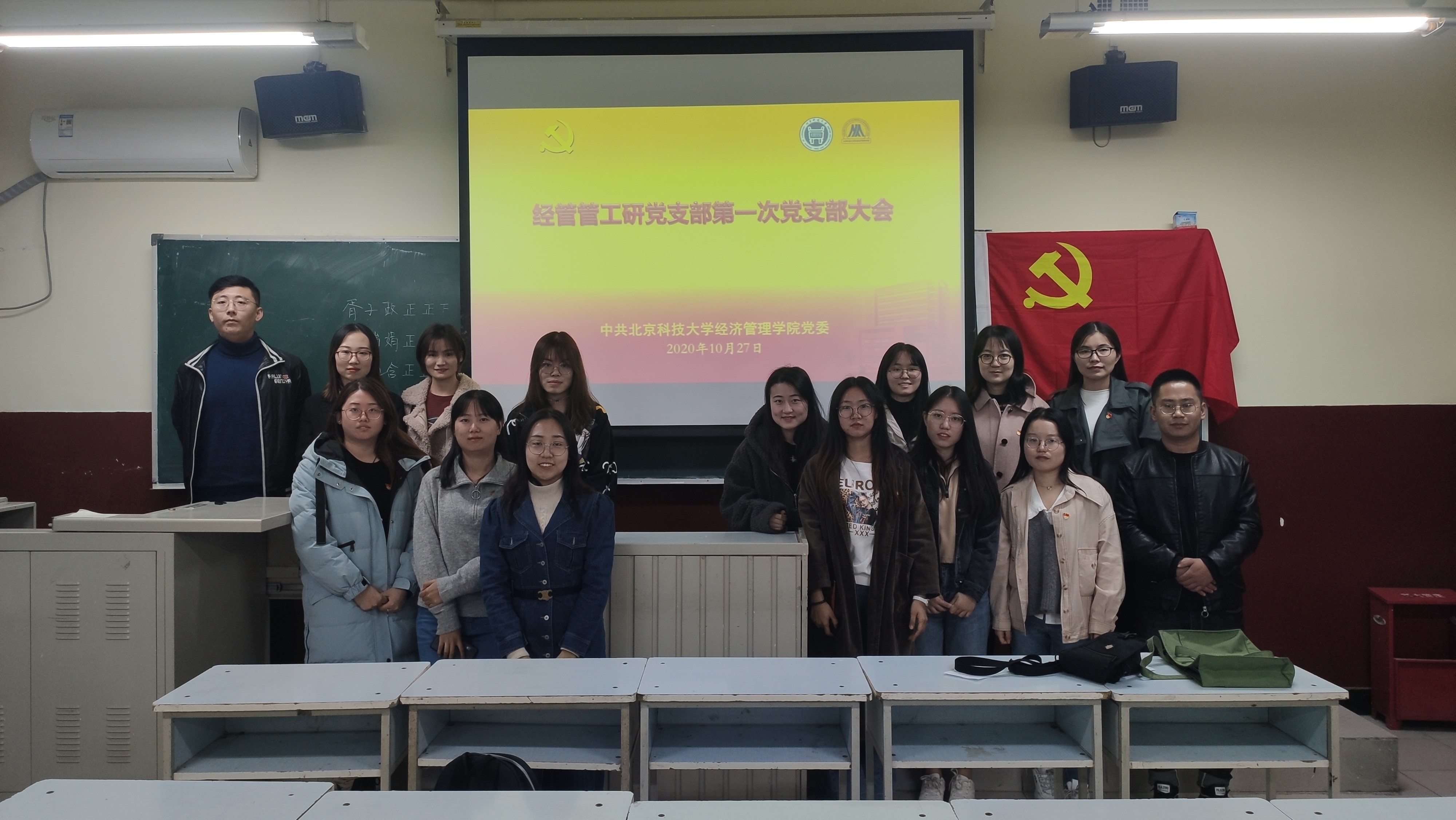 10月27日,H片 管工研党支部于管庄校区教学楼205召开了第一次党员大会。会议由尹香婷同志主持,党支部全体成员参加会议,研究生辅导员李响、丁源老师出席会议。