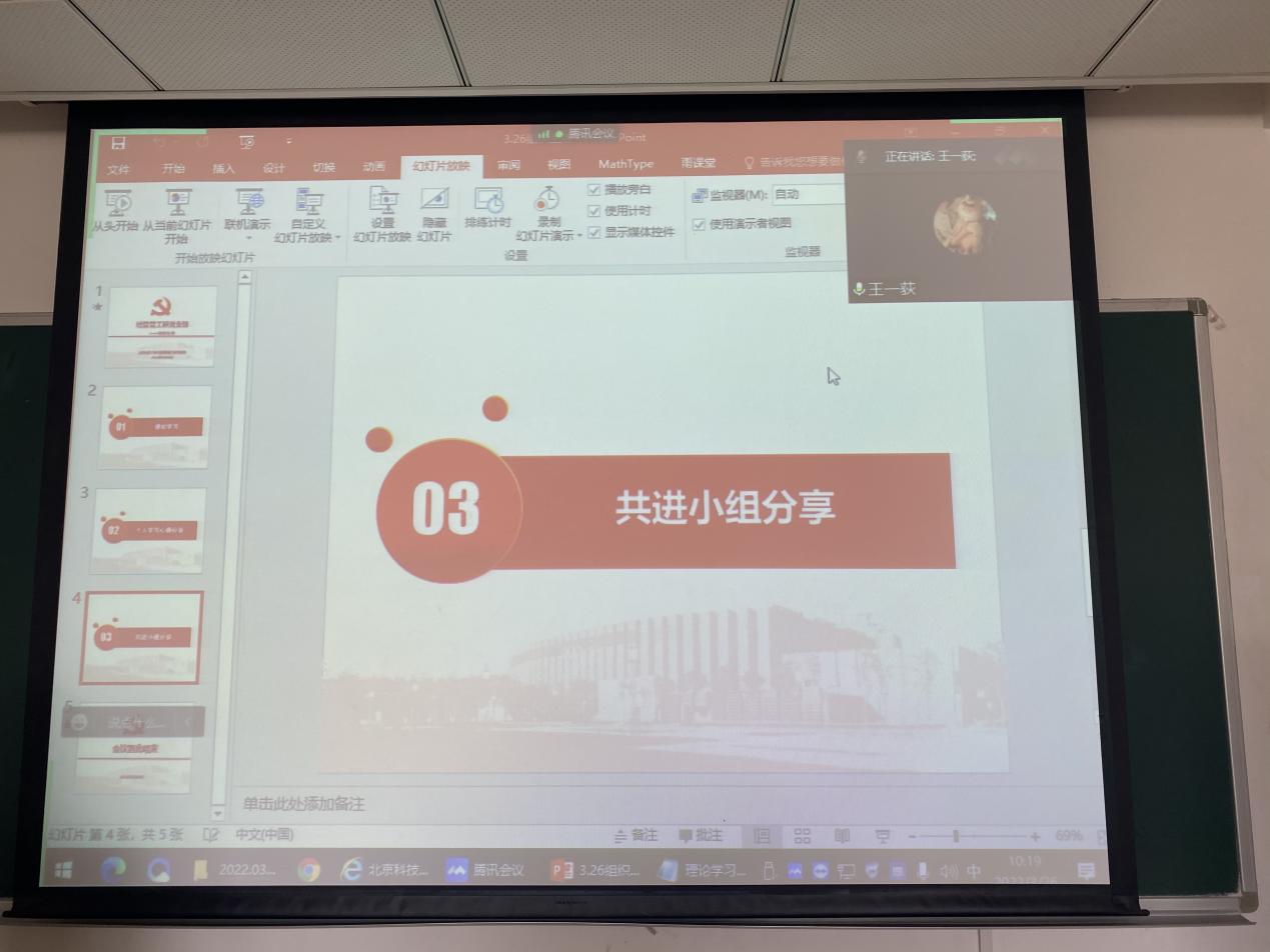 2022年3月26日9:00,H片 管工研党支部开展了三月党支部的组织生活活动,因疫情防控原因,本次组织生活于经管楼502、管庄校区教学楼109和腾讯会议同步开展。支部党员34人参加,积极分子13人列席。