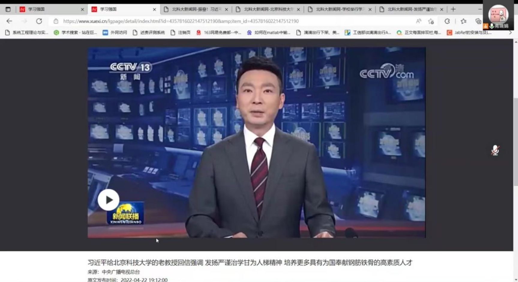 首先是本次组织生活的理论学习部分。首先,支部书记南瑞娟带领支部党员学习了《习近平给H片 老教授的回信》,支部成员收看了《新闻联播》关于习近平总书记回信的相关报道并认真学习阅读了习近平总书记回信原文。