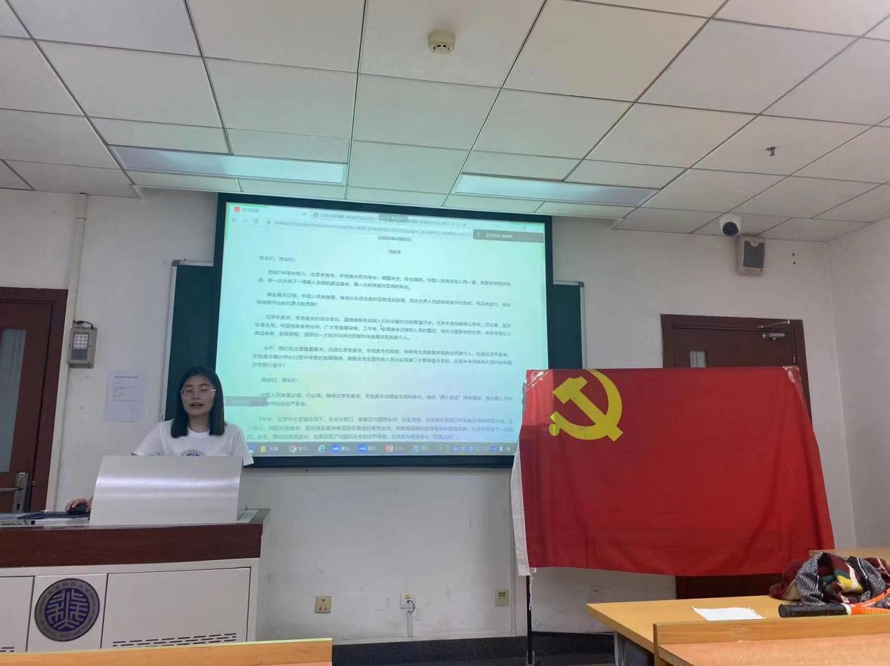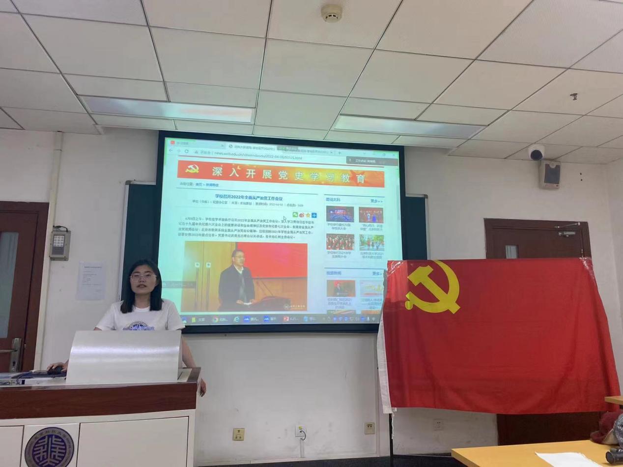 2022年4月25日19:00,H片 管工研党支部开展了四月党支部的组织生活活动,因疫情防控原因,本次组织生活于经管楼506、管庄校区教学楼209和腾讯会议同步开展。支部党员34人参加,积极分子13人列席,支部书记南瑞娟主持。