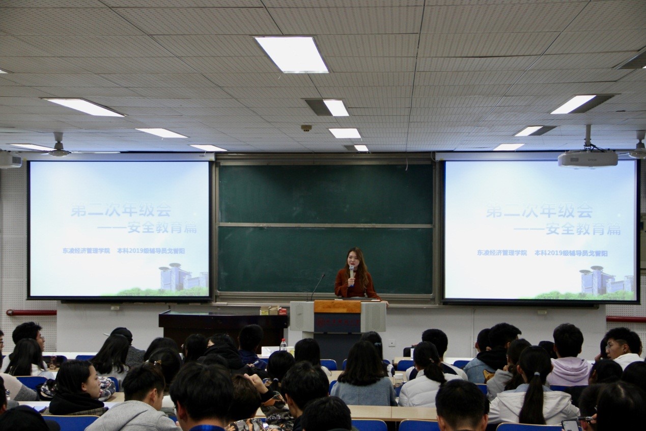 为防范打击通讯信息诈骗,提高学生消防安全意识,加强各类风险防控,维护学生人身、财产安全和学校教育教学秩序,11月6日,东凌H片 本科2019级工商管理类“安全教育”主题年级会于机电楼106顺利举办,辅导员戈誉阳主讲。