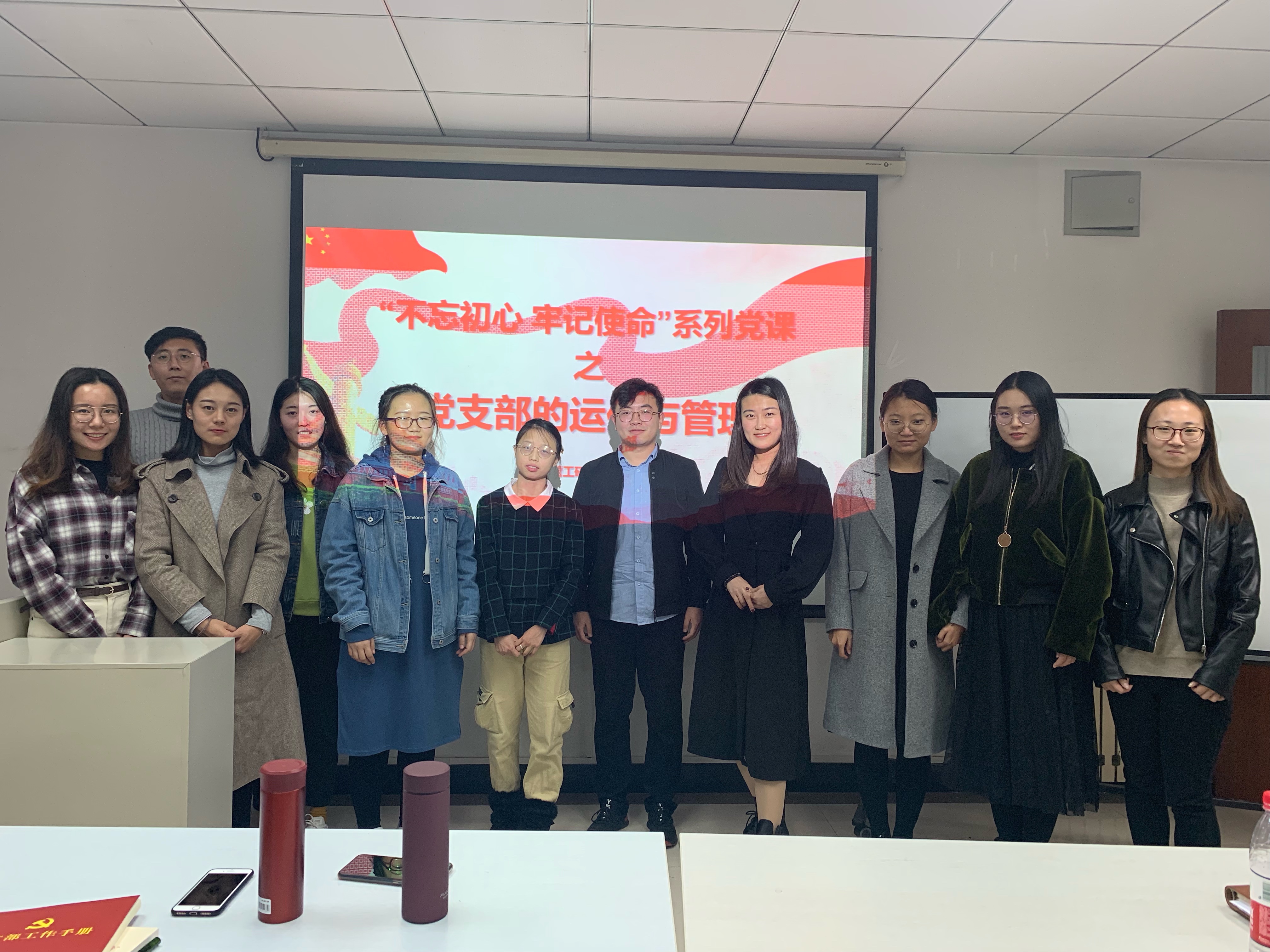 首先,尹香婷带领全体党员回顾“不忘初心,牢记使命”主题教育的核心要点,并给大家上了新学期第一次党课,党课以“党支部的运作与管理”为主题,从党支部的定义及工作原则、党支部的工作机制和组织生活、中国共产党发展党员工作流程三个方面出发,介绍党支部组成情况,党员发展流程等目前党支部基本的运作管理情况。