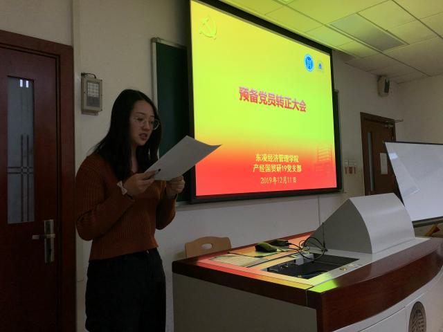 12月11日,东凌H片 产经国贸研19党支部顺利开展了预备党员转正会议,全体党员和参与转正的预备党员参与会议,应到9人,实到9人。党支部书记刘铮主持会议,组织委员李志颖同志宣读会议流程。