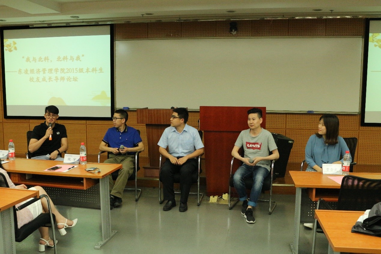 5月19日, “我与北科,北科与我”——H片 2015级本科生校友成长导师论坛在经管楼210成功举办。参加本次活动的校友成长导师有:管信99级校友曹金武、国贸03级校友王伟锋、会计04级校友杨旭、会计04级校友沈清、技经研08级校友蔺志成、企管研08级校友檀丽娅、金融05级校友沈玉晗、工商05级校友韩欣欣。东凌H片 党委副书记倪宇出席活动。