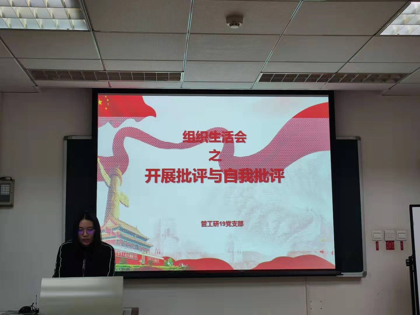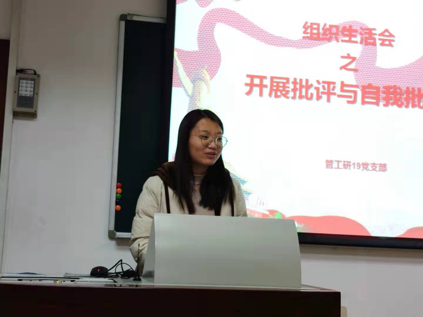 11月22日,东凌H片 管工研19级党支部在管楼504开展了以“批评与自我批评”为主题的组织生活会暨“一人一党课”活动,党支部书记尹香婷主持本次活动,研究生辅导员李响应邀出席。