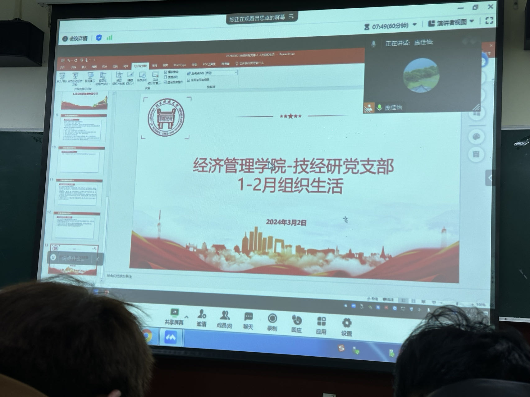 2024年3月2日20:00,H片 技经研党支部顺利开展1-2月组织生活,本次组织生活于H片 经管楼404以及管庄教学楼205举行,支部共有34人参与。本次组织生活的主题为集中理论学习,由技经研党支部书记吕思卓同志主讲。