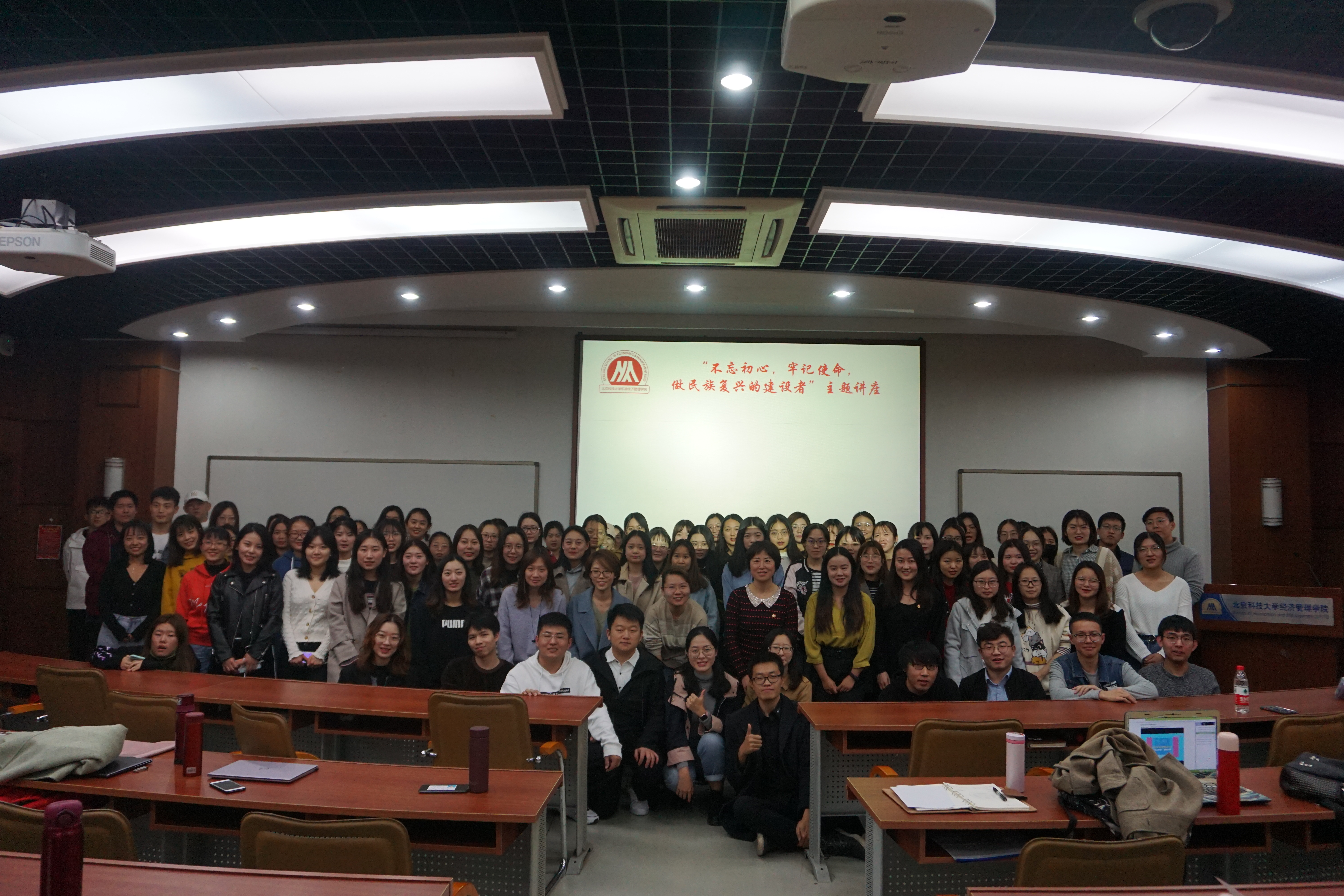 在中华人民共和国成立70周年这个具有特殊历史意义的重要时点上,开展“不忘初心、牢记使命”主题教育,具有更加重大而深远的历史意义和现实意义,是用习近平新时代中国特色社会主义思想武装全党的迫切需要,是推进新时代党的建设的迫切需要。11月1日下午2:30,东凌H片 “不忘初心,牢记使命,做民族复兴的建设者”主题教育讲座在经管楼313成功举办,副院长黄晓霞教授给全体19级研究生上了生动的一课,会议由研究生辅导员李响主持。