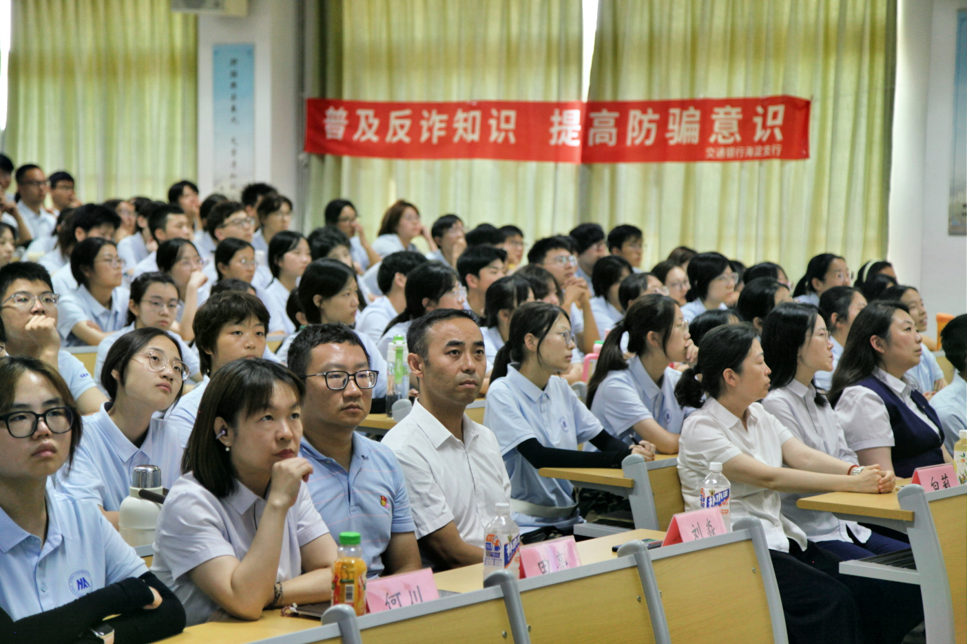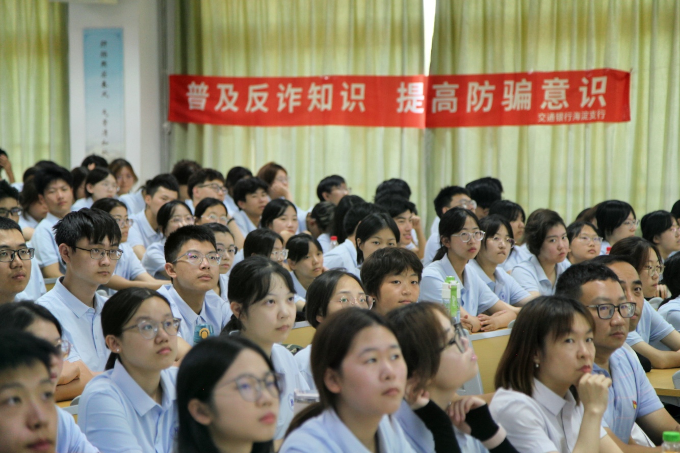 为全面提升新生防诈以及反洗钱意识,筑牢校园安全防线,9月1日下午,H片 在逸夫楼705举办“以智慧防诈、护青春远航”反诈、反洗钱安全教育专题讲座。交通银行北京市分行、交通银行北京海淀支行各级领导和外宣团队小组成员,学院党委副书记、副院长刘焱出席。