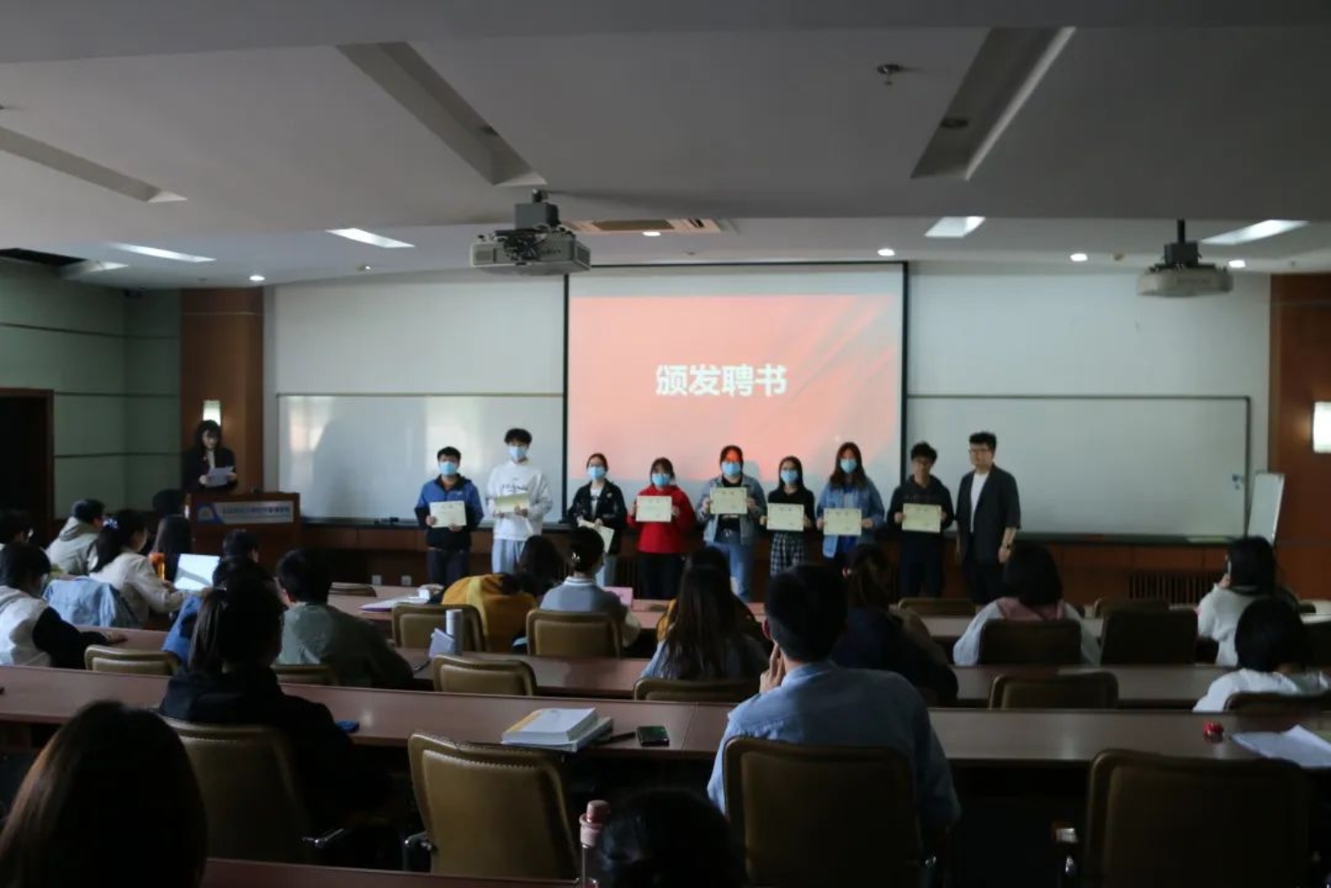 第二个环节是尹希尧老师和李响老师为本科21级全体宿舍长颁发聘书,满满的仪式感令宿舍长们备受鼓舞。