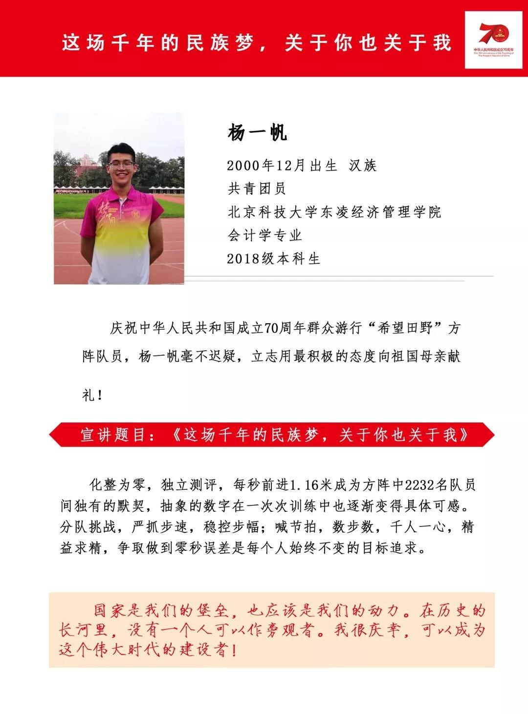 国庆游行活动结束后,H片 东凌H片 组建了“爱国情 强国梦 报国行”——东凌H片 庆祝新中国成立70周年国庆活动宣讲团。宣讲团由三名经管学生组成,他们分别参与到70周年国庆活动的广场合唱、志愿服务以及群众游行活动中。宣讲团成员们以自己亲身参与活动的经历和感悟为内容进行宣讲,用实际行动向祖国表白,弘扬爱国之情,宣传爱国之志。