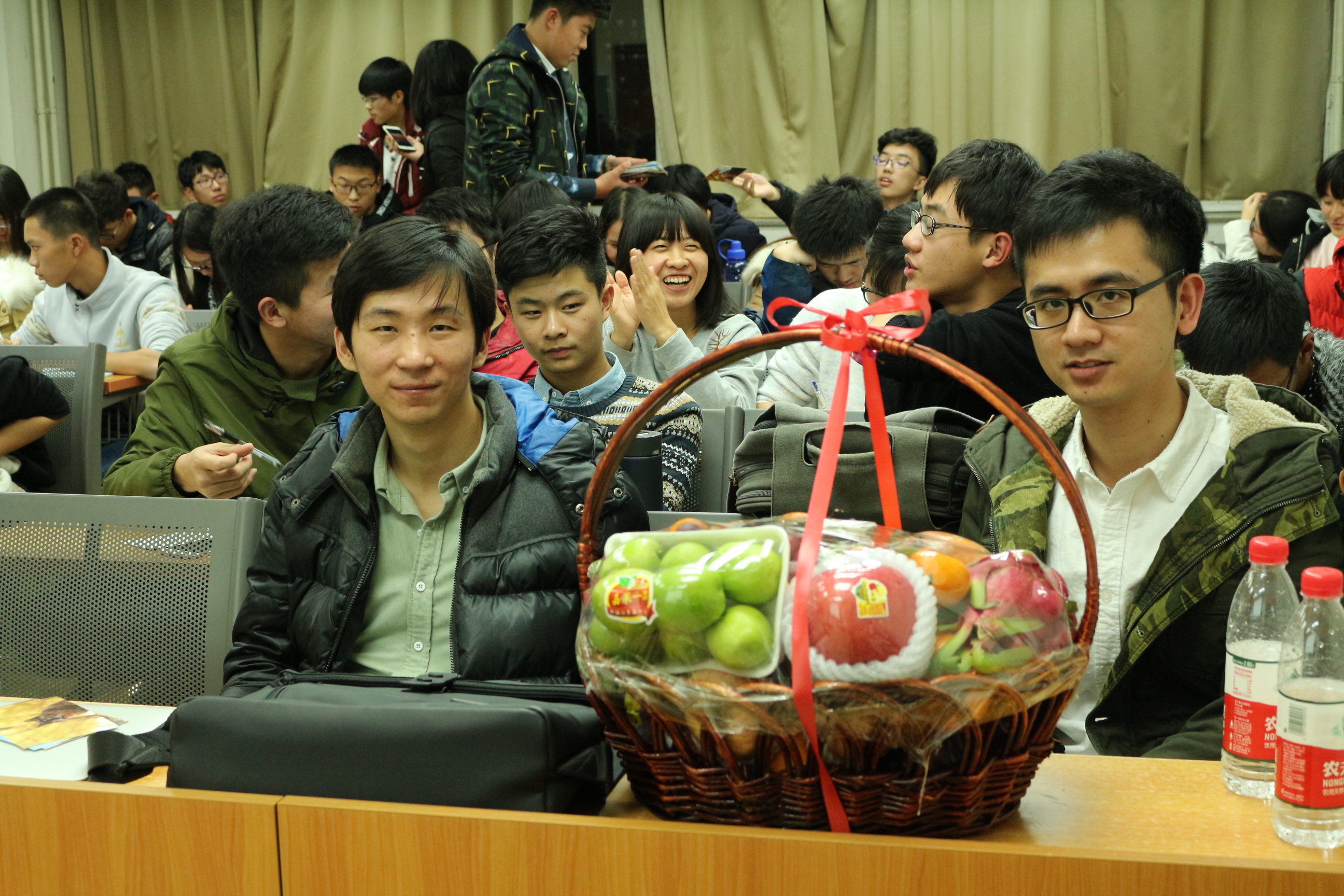 王乐学长和吴少刚学长,在学习方面主要讲解了关于基础课、专业课、相关竞赛等方面的内容,关于自主性也进行了分析,比如游戏可以玩,但不可以沉迷。对于社交方面,要有认真和善意的态度。还对大二大三大四的生活进行了具体描述,告诉我们可以参加的有意义的活动有哪些,可以锻炼自己,让同学们受益匪浅。接下来进入问答环节,同学们提出了自己的问题,学长们也耐心专业地解答了这些问题。