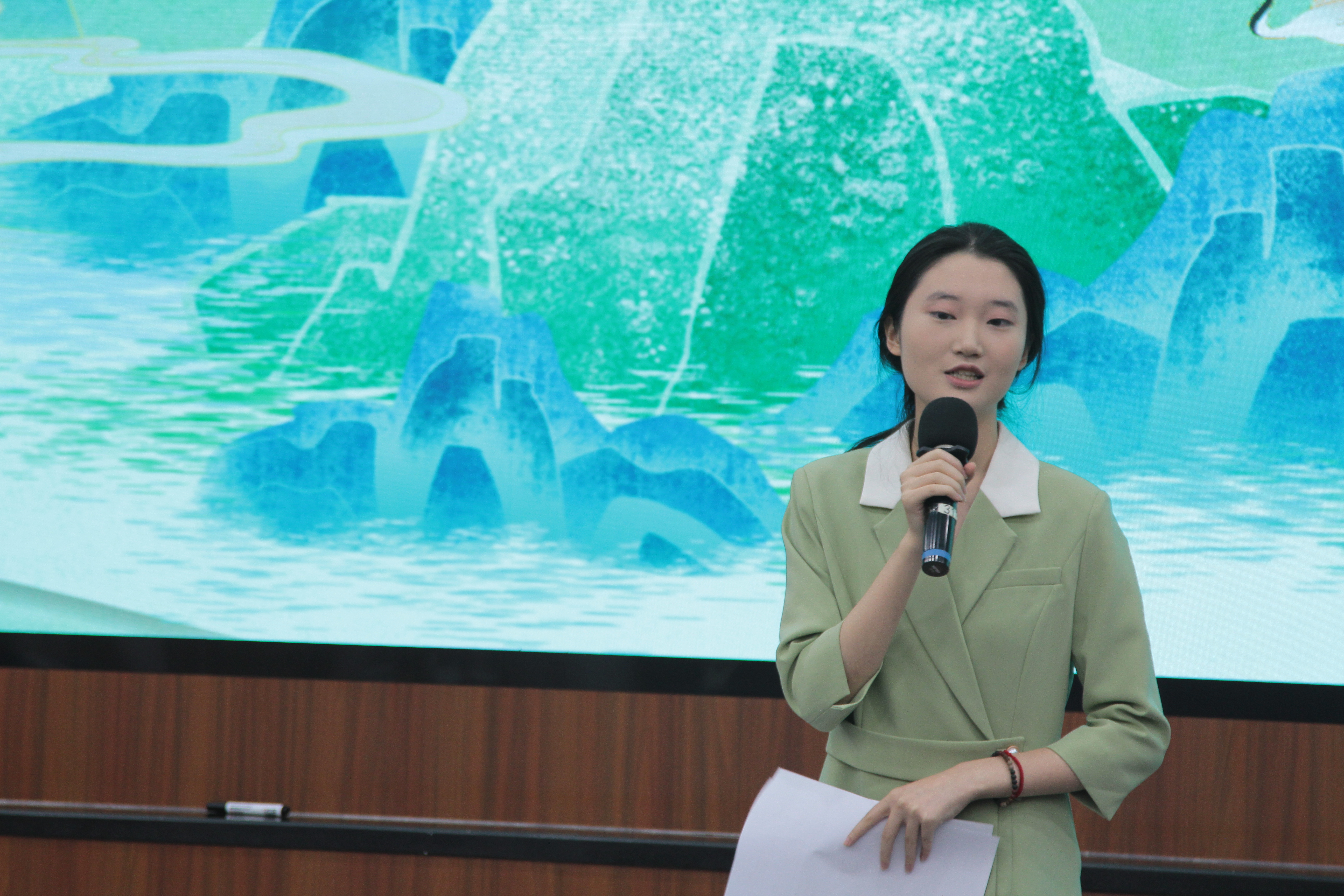 学院22级本科生辅导员许师旸,25级本科生辅导员王丹蕊、周一帆,第20届主持人大赛“十佳主持人”任佳鑫、马骏裴出场并担任评委。