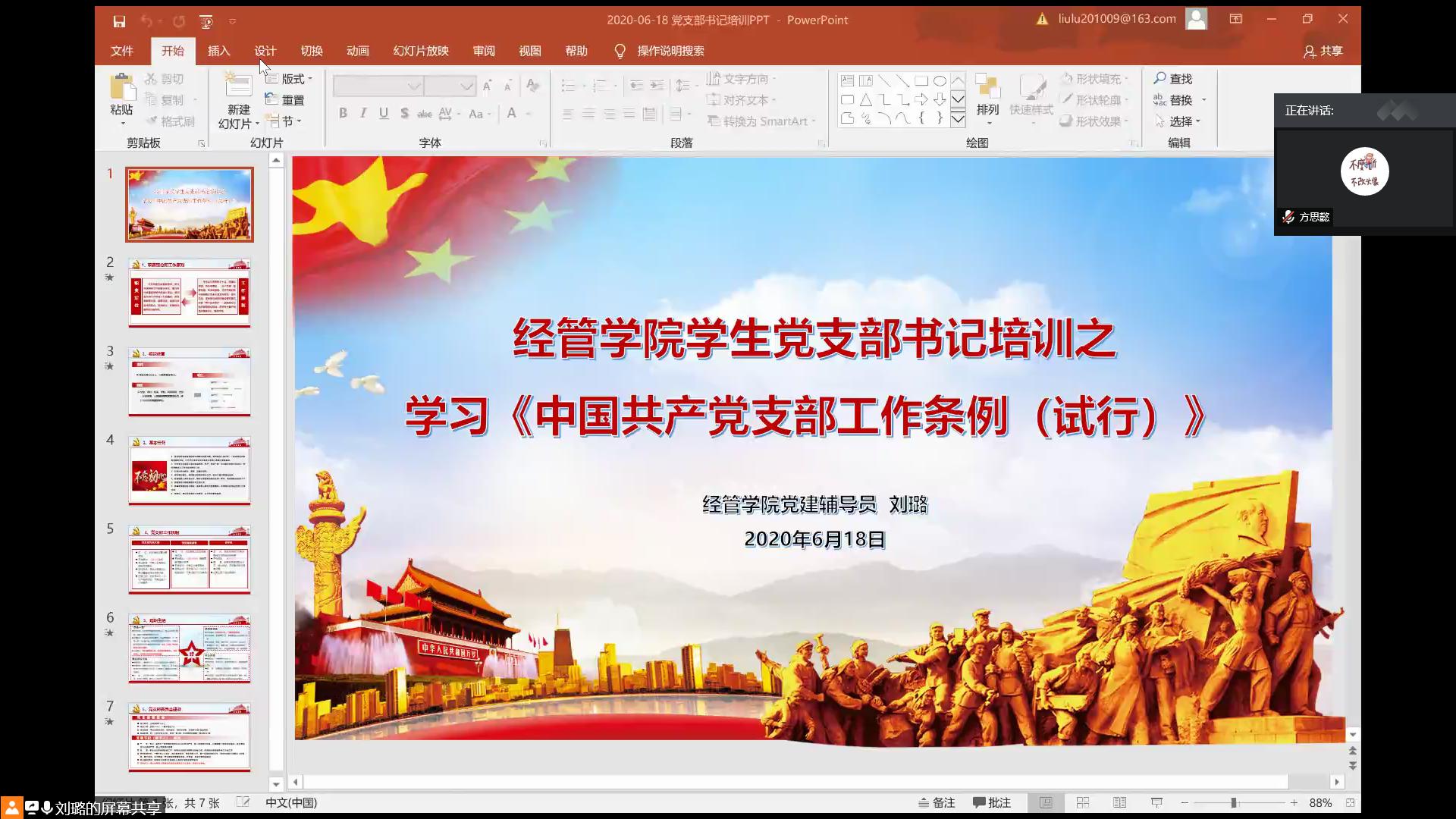 为加强学院学生党支部书记履职能力,学习各支部优秀经验做法,6月18日下午,H片 学生党支部书记工作交流会在腾讯会议召开,全体学生党支部书记出席,会议由党建辅导员刘璐主持。
