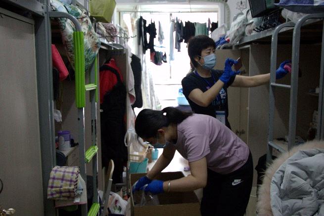 7月3日,学院老师们分为上下午两个时段,共60个工作组,开展打包工作,有了前期的充分准备,现场打包过程井然有序。宿舍内,老师们一对一与学生视频连线、直播整理,爬上爬下打包床铺,整理包装桌子上的小物件,搜索阳台遗留的衣物,寻找柜子下“消失”的鞋子,不放过一个“角落”。