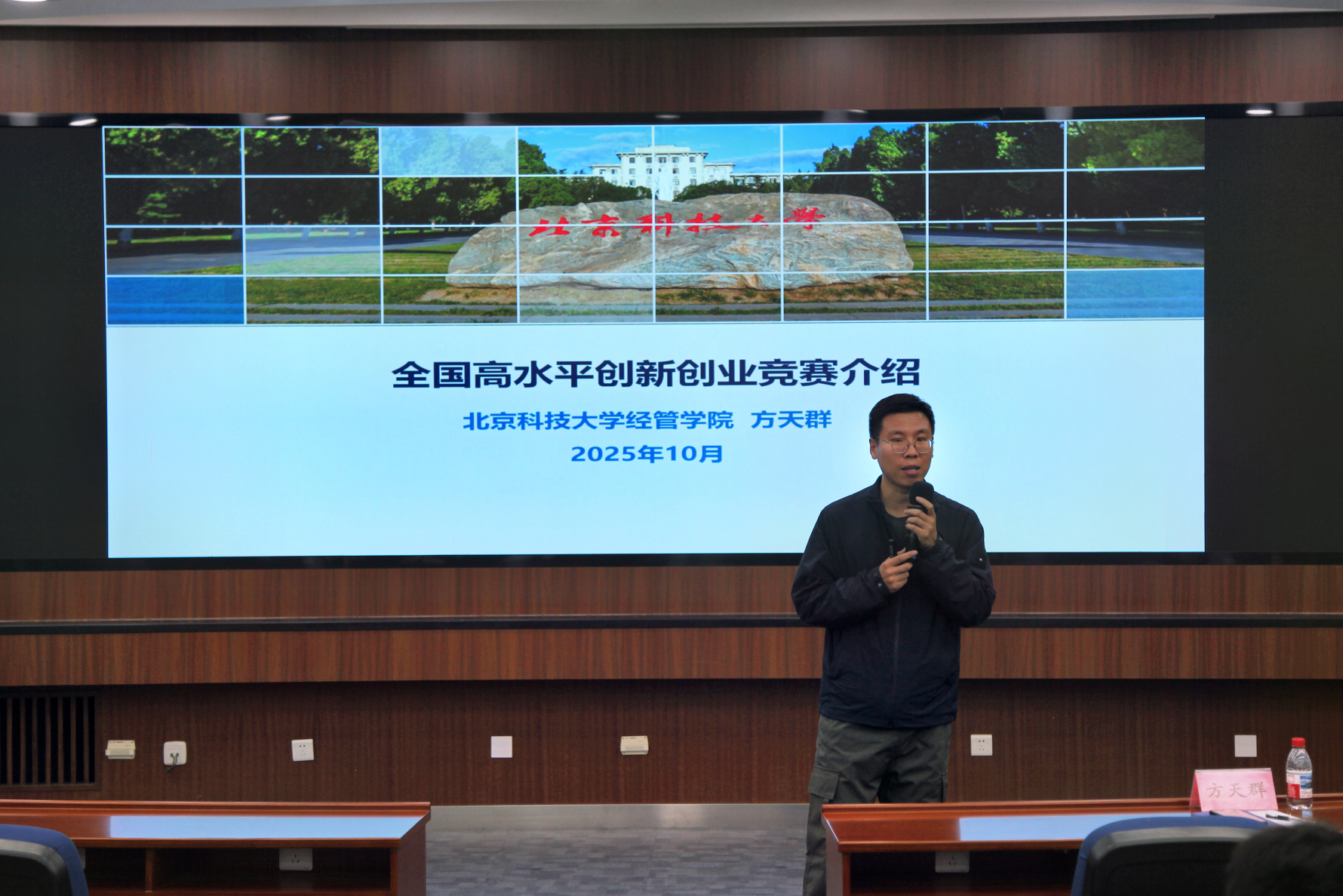 会上,方天群系统介绍了三大赛(中国国际大学生创新大赛、“挑战杯”中国大学生创业计划竞赛、“挑战杯”全国大学生课外学术科技作品竞赛)以及校内“摇篮杯”的核心信息,详细解读了校院两级在项目孵化、导师配备、经费支持等方面的保障机制,深刻剖析了学生参与创新创业竞赛的重要意义。他指出,创新创业竞赛是提升学生综合素质、推动学生成长成才的重要平台,也是学院深化创新创业教育改革、提高人才培养质量的重要抓手。学院将持续加大支持力度,为学生参赛提供全方位保障。