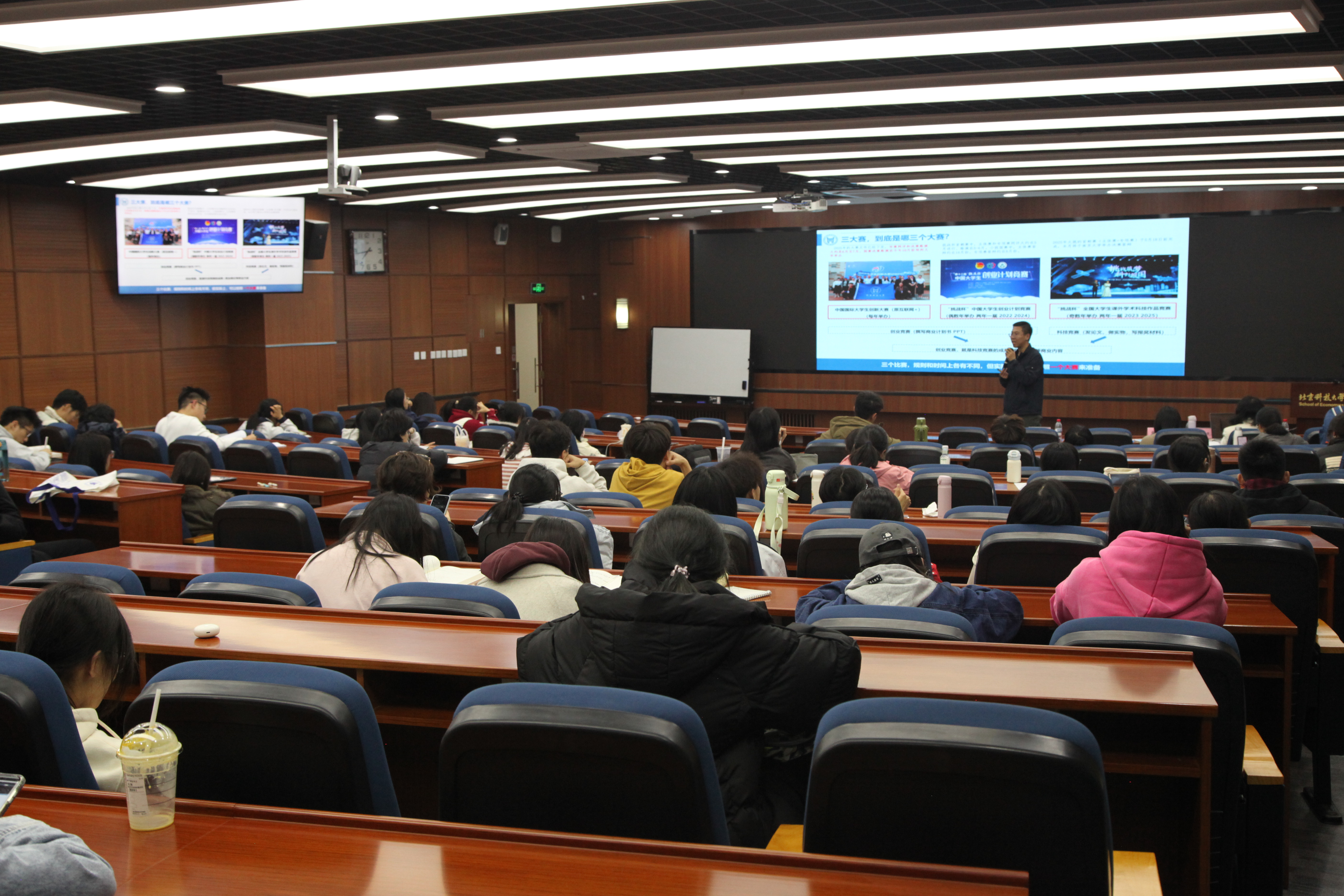 在前辈经验分享环节,三位嘉宾以亲身经历系统解析创新创业竞赛全流程,为在场学生提供可借鉴、可复制的参赛路径。