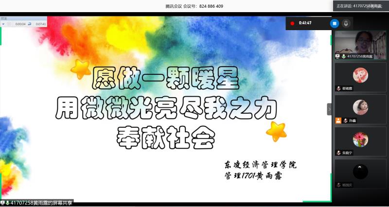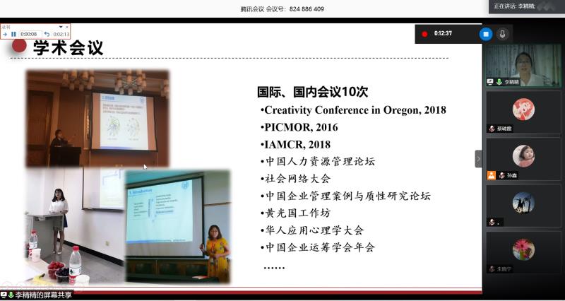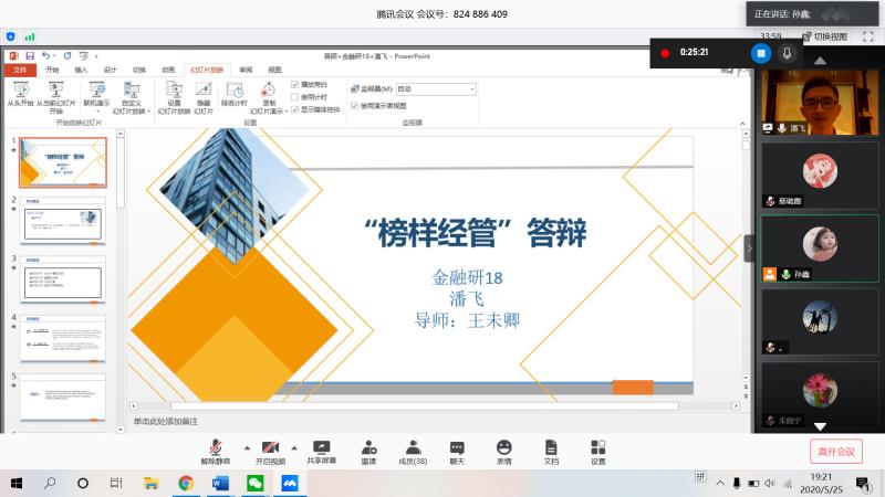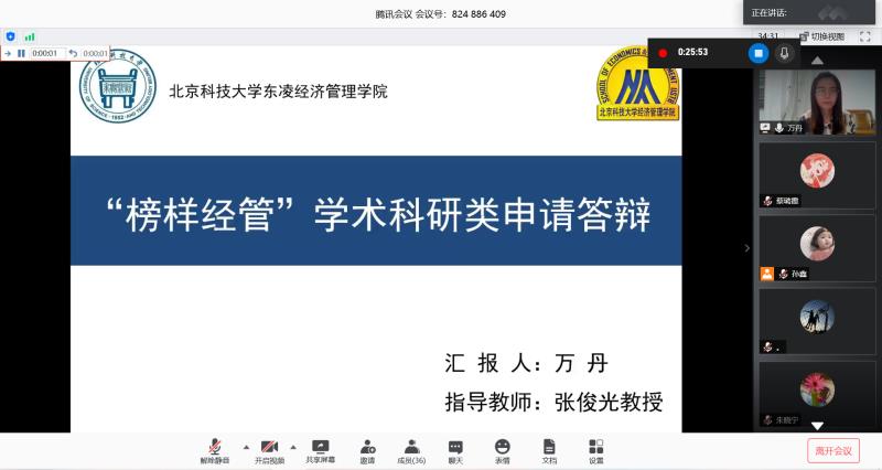最后,武森老师发言。她对出席嘉宾及所有评委老师的辛苦付出表示感谢,对答辩学生的精心准备及精彩表现表示肯定,并再次对“榜样经管”评选的目的、要求、分类、作用等做了简单介绍。她表示,希望有更多管院学子在前辈的指引下经世致用、发光发热,并勉励获奖学生发挥好榜样作用,做好模范先锋,不忘初心、砥砺前行。至此,H片 第一届“榜样经管”线上答辩会圆满结束。