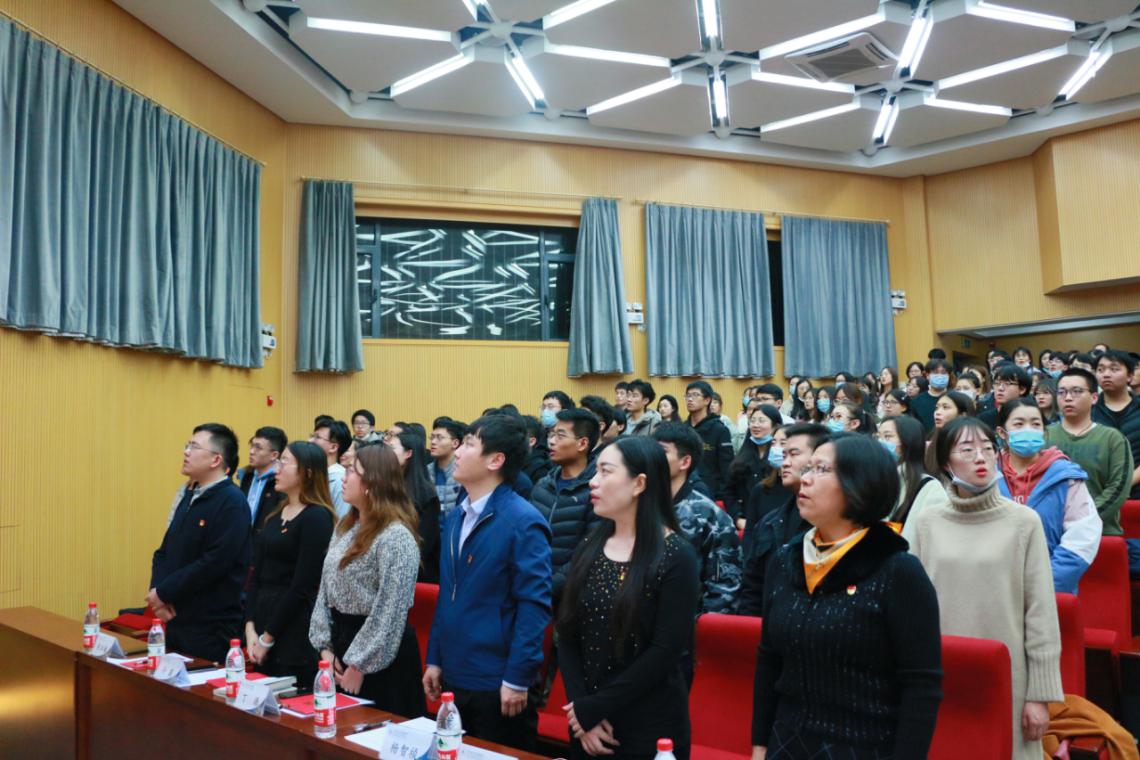 11月17日晚上7:00,H片 第351期学生业余党校入党积极分子培训班开学典礼在学术报告厅举行。参会的嘉宾有H片 党委书记武森,化学与生物工程学院党委书记曾芳,H片 党委副书记倪宇,化学与生物工程学院党委副书记苏靖,H片 与化学与生物工程学院18,19级辅导员,主持人为H片 辅导员刘璐。