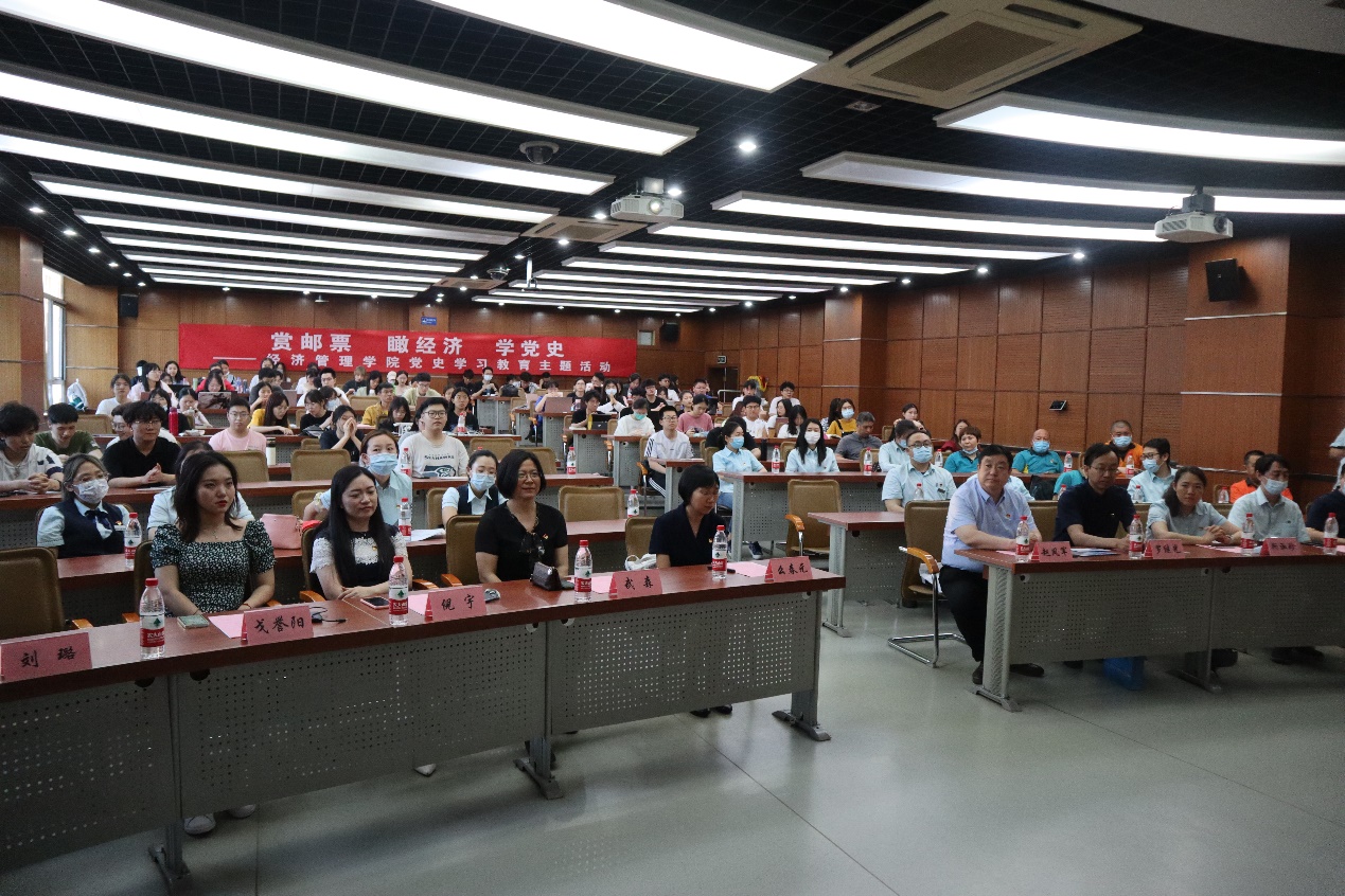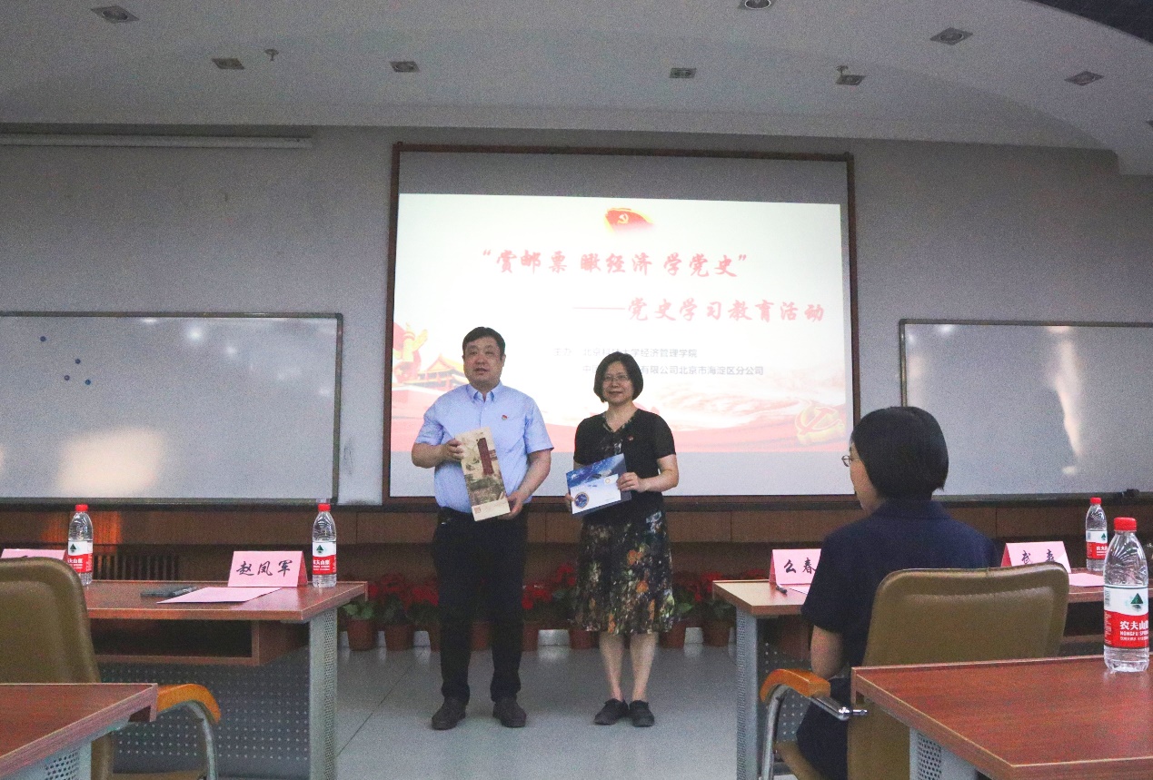 为创新形式开展党史学习教育,帮助师生更好地了解党的光辉历史、感悟党的思想伟力,6月3日晚19:00,“赏邮票 瞰经济学党史”H片 党史学习教育主题活动顺利举办。本次活动邀请到的嘉宾有:中国邮政集团有限公司北京市海淀区分公司党委书记、总经理赵凤军,副总经理、工会主席罗继光,邮政集邮与文化传媒部经理张鹏,学院路邮政支局局长靳淑珍,学院路邮政支局副局长李暘,学院路邮政支局副局长蒋焘。H片 党委书记武森,党委副书记、副院长倪宇,团委书记刘璐,团委副书记戈誉阳出席活动。