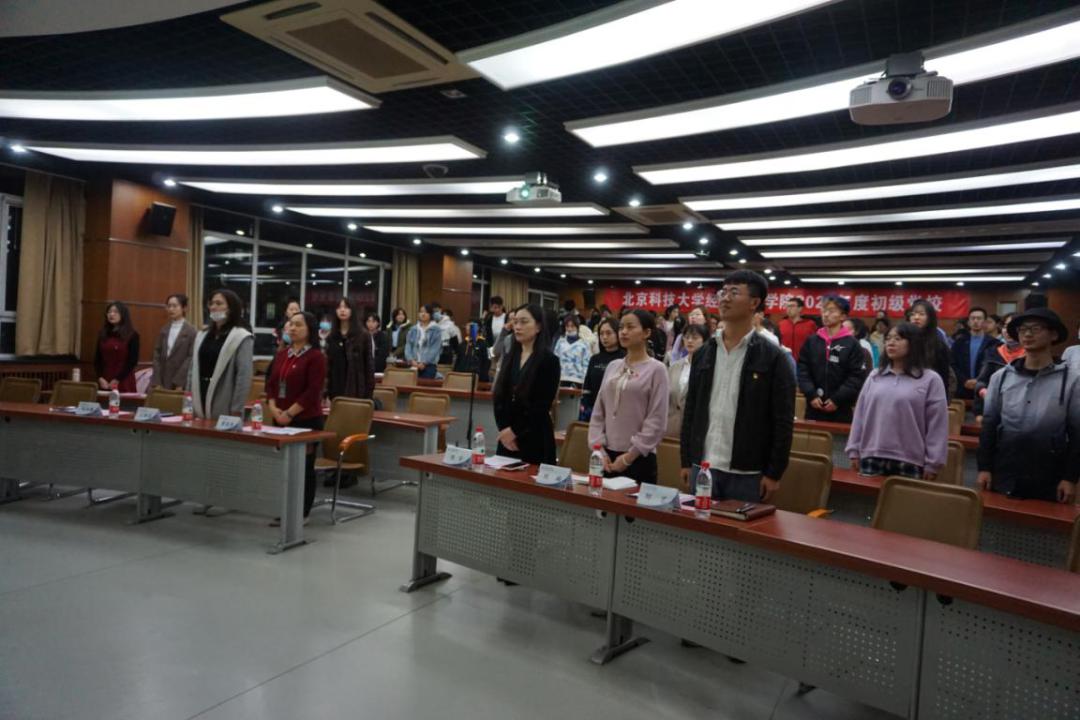 首先,全体学员起立奏唱国歌。