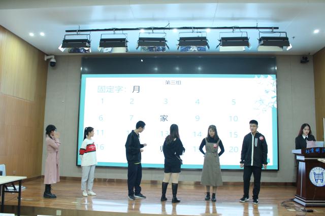 经过各个学院分站赛的选拔,本次校复赛共有25名选手参与,比赛共分三轮。第一轮积分赛,25名选手分为五组,每位同学通过答题积分,每组排名最末的选手直接淘汰。相比于初赛、分站赛,校复赛的题目难度明显增加。题型包含选择题和判断题,内容囊括诗词理解、文化常识等知识,不仅考察了选手对于诗词的积累与理解,同时也考察了他们对于传统文化的了解程度。随着赛程的进行,选手们沉着答题,冷静应战,他们的出色表现赢得了台下观众的连连赞叹。现场不时出现了许多同分选手难分高下的情形,故而根据赛制为同分选手进行了诗句接龙的加时赛。经过激烈竞争,最终有20名选手成功晋级第二轮比赛。