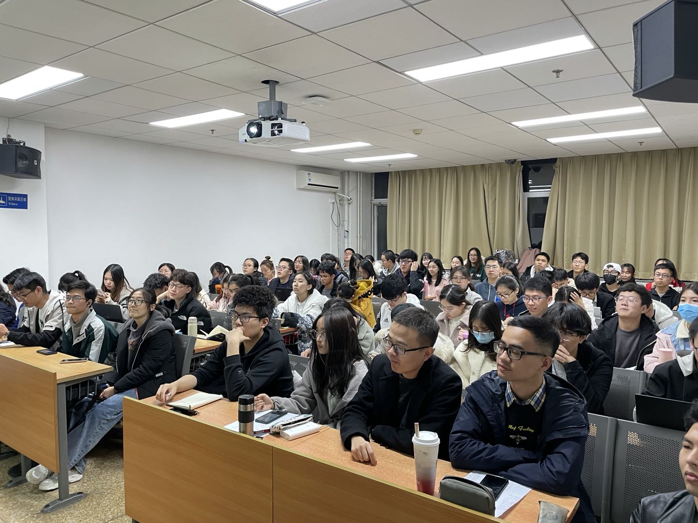 11月26日晚19:00经管楼312考研经验分享会成功召开。本次分享会首先由邹艺辅导员做开场简介,为到场的成功上岸的学长学姐们分发纪念品并合影。