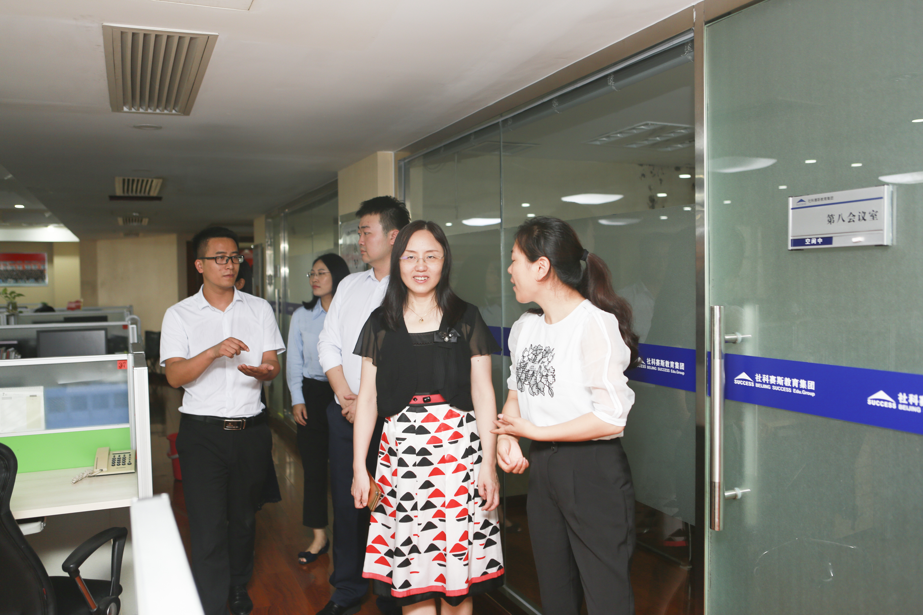 在社科赛斯教育集团校长助理兼MBA事业部总监刘春茶女士的引领下,李晓静主任一行首先对社科赛斯教育集团的公司环境进行了参观,并就公司H片和发展历程以及员工风采进行了整体了解。