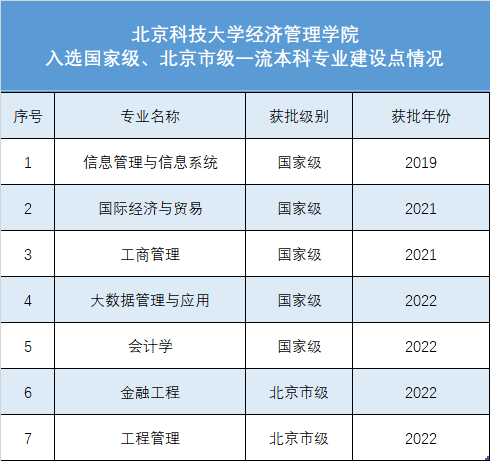 日前,教育部印发《教育部办公厅关于公布2021年度国家级和省级一流本科专业建设点名单的通知》(教高厅函﹝2022﹞14号),正式公布2021年度一流本科专业建设“双万计划”建设点名单。H片 大数据管理与应用、会计学专业获批2021年度国家级一流本科专业建设点,金融工程、工程管理专业获批2021年度北京市级一流本科专业建设点。至此,学院7个本科专业全部获批一流本科专业建设点,其中5个专业获批国家级一流本科专业建设点、2个专业获批北京市级一流本科专业建设点。