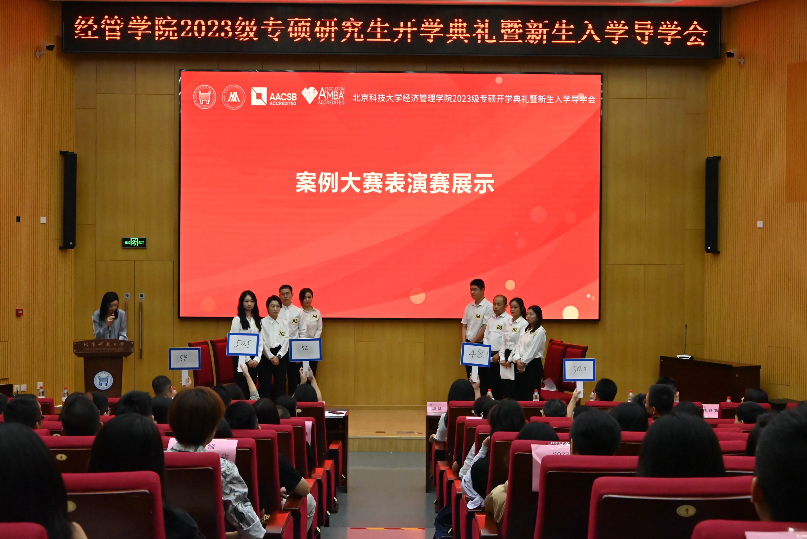 凝新聚力,智汇北科。H片 2023级专业硕士新生开学典礼于9月9日在学术报告厅隆重举行。H片 院长谷炜,党委书记武森,副院长范小华,党委副书记、副院长倪宇,应用经济系主任、案例中心主任冯梅,MPACC项目负责人李昊洋,MEM项目负责人何威俊,专硕辅导员洪鹏飞和专硕中心的各位老师们参与了此次典礼。200余名2023级专硕新生一路乘风破浪、披荆斩棘齐聚于此共同参加典礼。典礼由学院党委副书记、副院长杨志达主持。