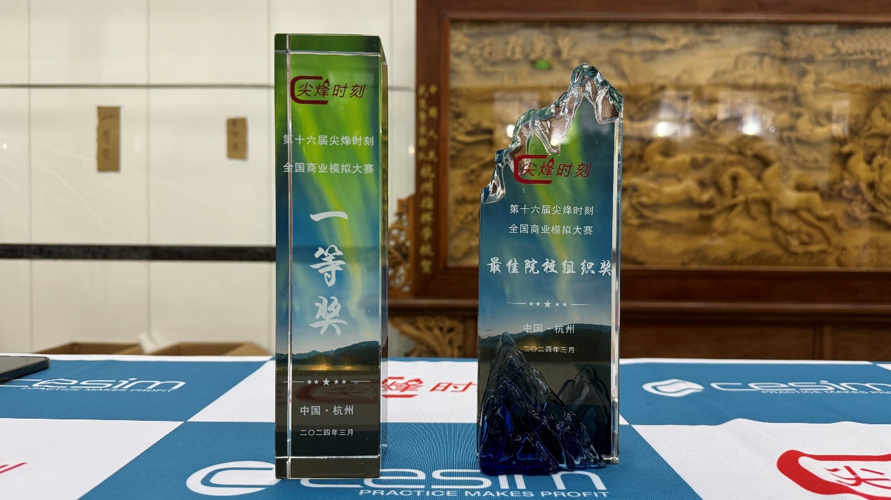 3月29日,由“尖烽时刻”中国赛区组委会主办、浙江工业大学承办的第十六届“尖烽时刻”商业模拟大赛总决赛在杭州举行。我院胡玲老师带领2023级MBA张海珍、李承贤、彭志辉、杨振宇四位同学组成的屠龙刀团队在比赛中脱颖而出,荣获第十六届“尖烽时刻”商业模拟大赛总决赛一等奖,同时,还获得了最佳院校组织奖和优秀指导教师奖(胡玲老师)。